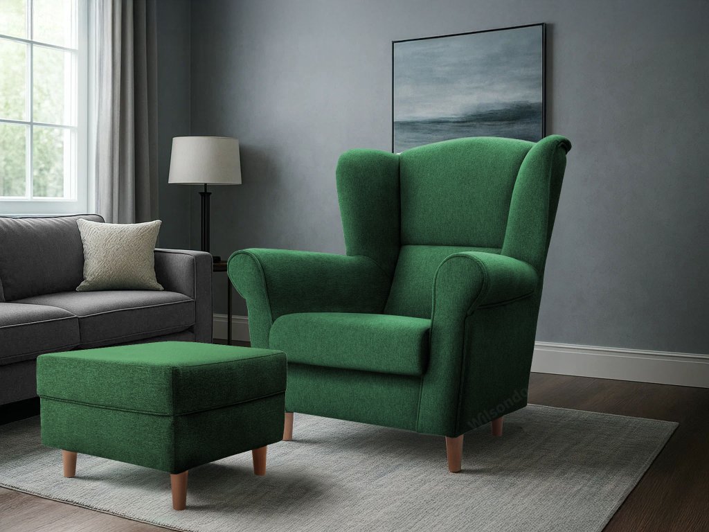A gyönyörű és elegáns zöld szövettel kárpitozott LOFT lábtartó egy stílusos és praktikus kiegészítő. Elegáns kinézetének és fa lábainak köszönhetően tökéletes választást jelent a skandináv stílusú vagy a modern otthonokba, de választhatja az ipari stílusú helyiségekbe is.