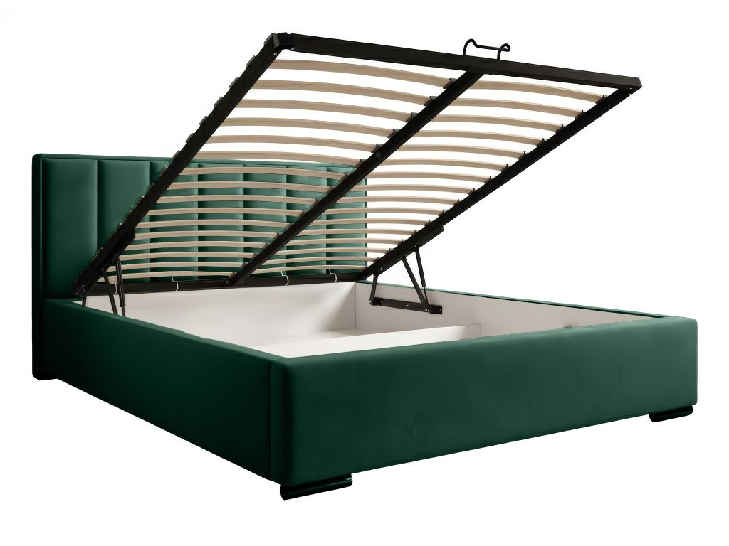 LOIS kárpitozott ágyneműtartós franciaágy 140x200 - zöld