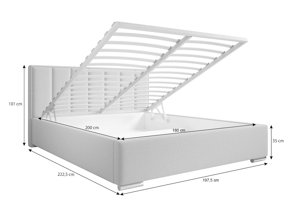 - Anyaga: laminált bútorlap, tömör fa - ágykeret, HDF bútorlap - ágyneműtartó, fém krómozott lábak, Velluto 27 szövet