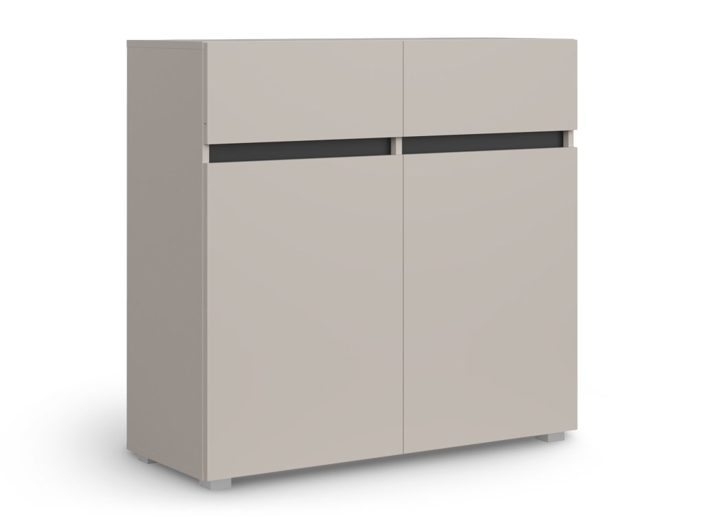 - Londia széles komód: két kisebb fiókkal és egy kétajtós szekrénnyel rendelkezik.