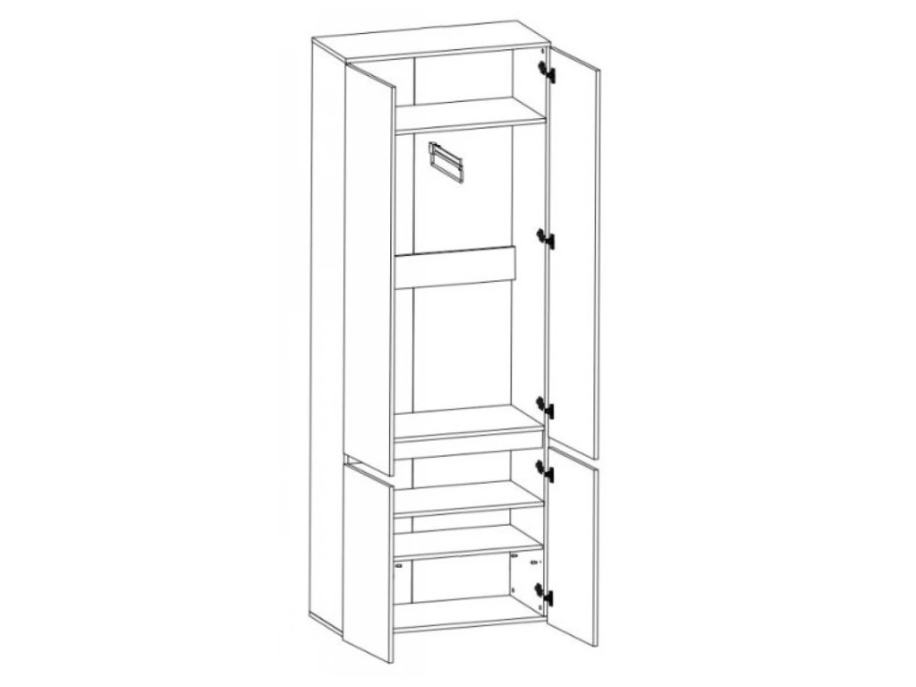 A Londia magas szekrényt kiegészítheti a kétajtós komóddal, az alacsony komóddal és az akasztós fallal, hogy egy elegáns előszoba bútor garnitúrát hozzon létre.