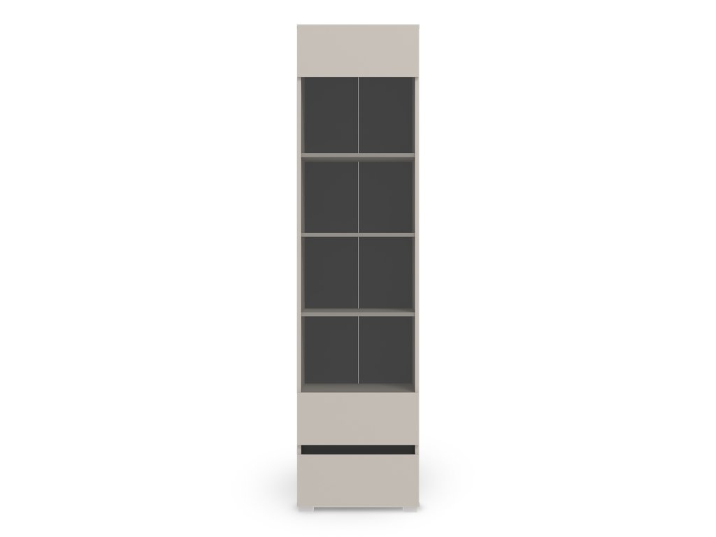 A LONDIA polcos vitrin kasmír színben a modern megjelenést praktikus kialakítással ötvözi, így elegáns kiegészítője lehet a nappalinak vagy a dolgozószobának. A vitrines szekrény felső üvegezett része négy polccal rendelkezik, amelyek ideálisak könyvek, dekorációk vagy kisebb kiegészítők elhelyezésére. Az alsó rész egy kisebb fiókot rejt. A fogantyú nélküli nyitás és az elegáns antracit szürke részletek tovább erősítik a Londia kollekció letisztult, modern karakterét. A bútor minőségi laminált bútorlapból készül, amely tartósságot és hosszú élettartamot garantál.