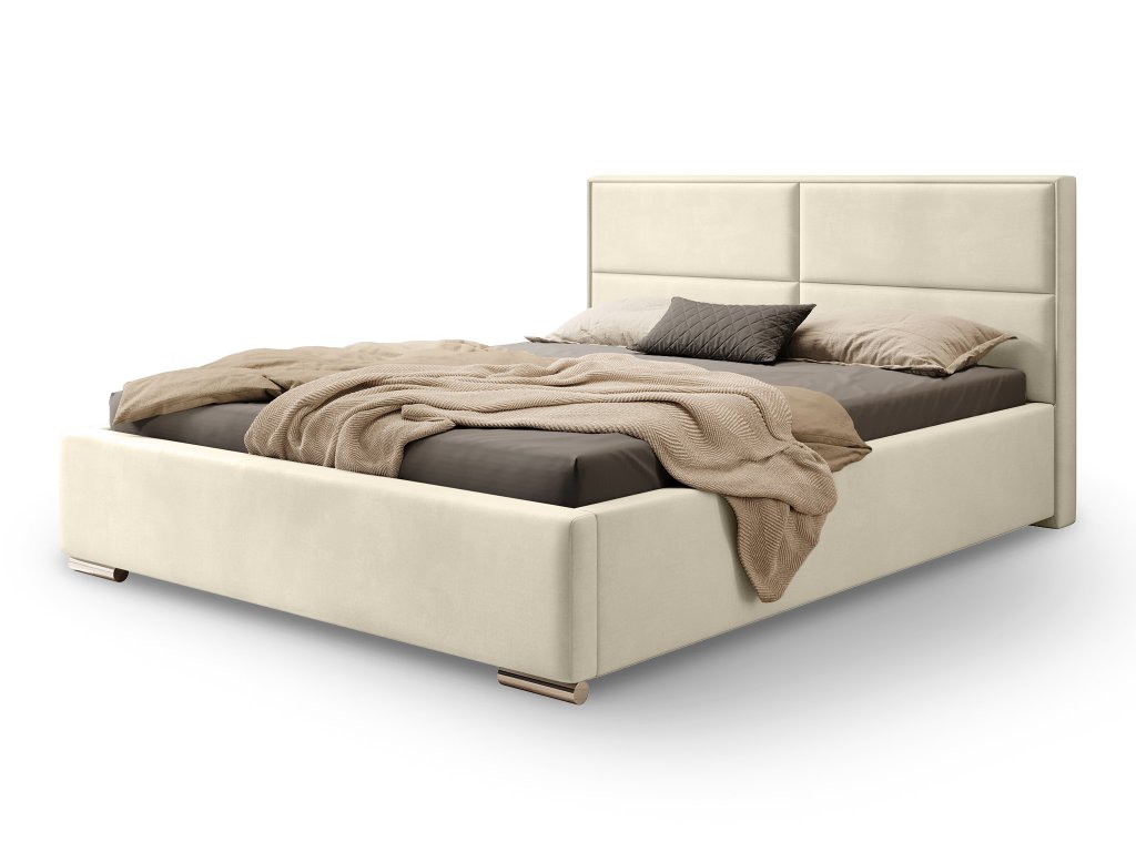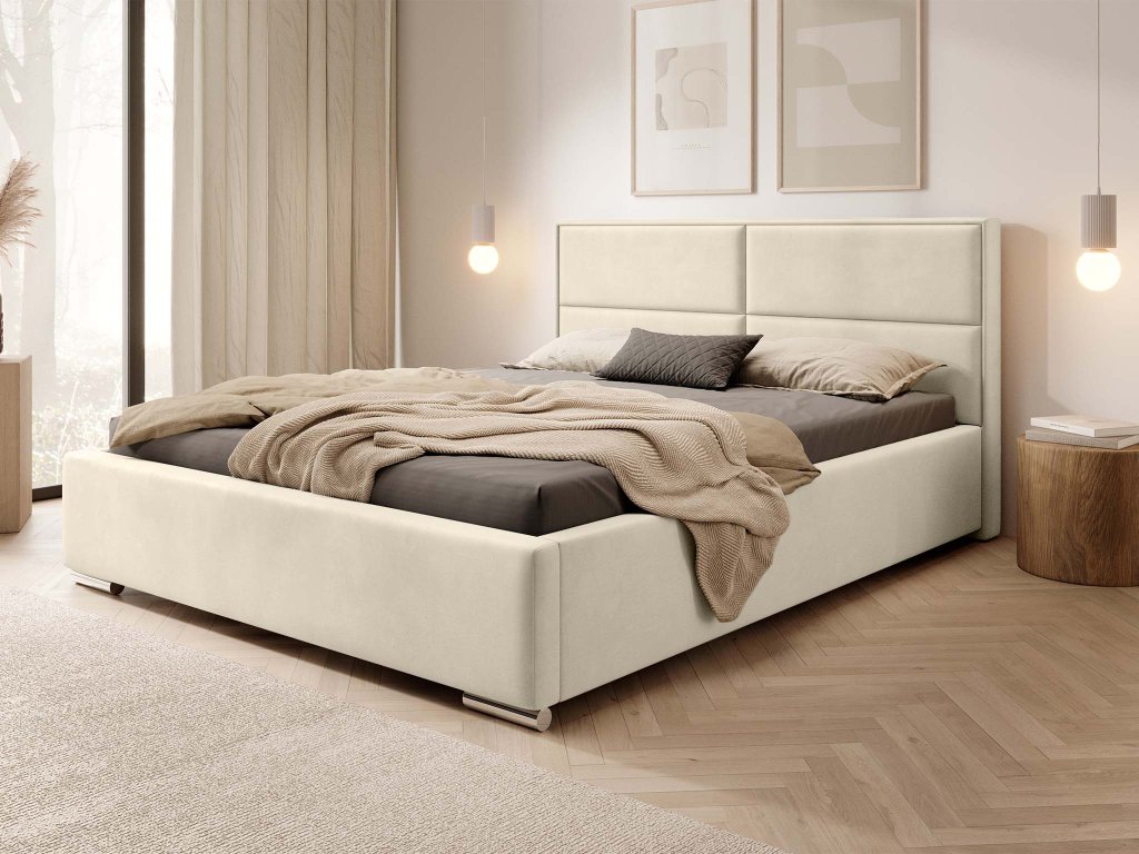 Fedezze fel a szépséget és kényelmet, amelyet a házastársi ágy Loretta 140x200 kínál finom krémszínben. Ez az ágy egyesíti a stílusos dizájnt, a funkcionalitást és a minőséget egyben. A kárpitozás luxus Kronos anyagból készült – puha velúr szövet elegáns bársonyos felülettel, amely kellemes tapintású és nemességet kölcsönöz a hálószobának.