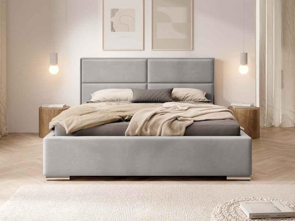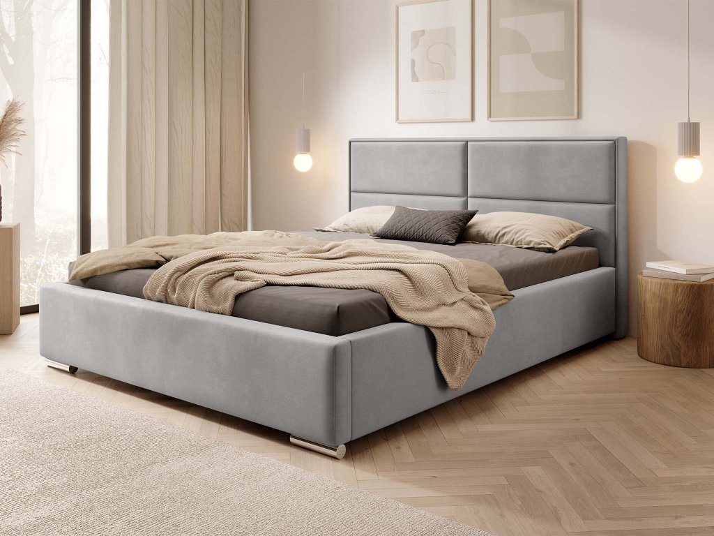Változtassa hálószobáját a nyugalom és stílus helyévé a világosszürke franciaággyal Loretta. A modern megjelenés és a finom kárpitozás eleganciát és otthonosságot kölcsönöz a helyiségnek, míg a kellemes velúr anyag Kronos felülete puha tapintású és luxus hatású.