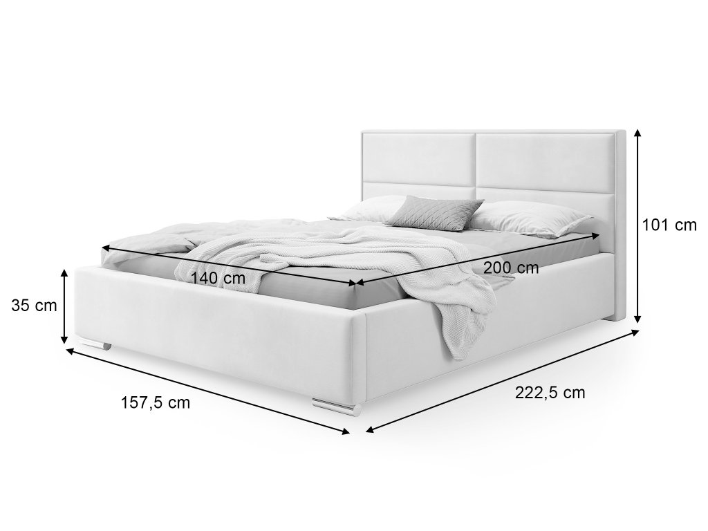 LORETTA kárpitozott franciaágy ágyneműtartóval 140x200 - világosszürke
