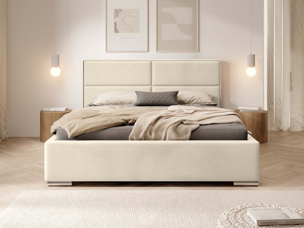 LORETTA kárpitozott franciaágy ágyneműtartóval 160x200 - ekrü