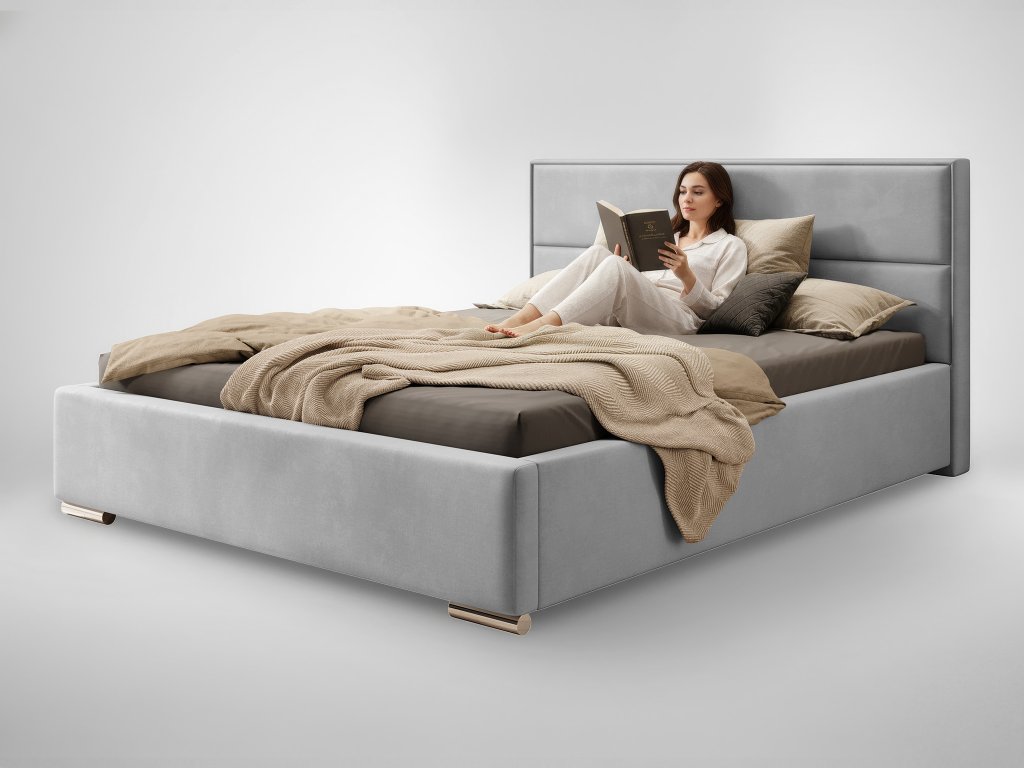 Kétszemélyes ágy Loretta 180x200, amely azonnal lenyűgöz modern megjelenésével. A Kronos szövet finom kárpitozása luxus hatást kelt, puha tapintású, és melegséget, otthonosságot kölcsönöz a helyiségnek. A magas fejtámla nemcsak szépen kiegészíti a dizájnt, hanem kényelmet is nyújt olvasás vagy esti pihenés közben.