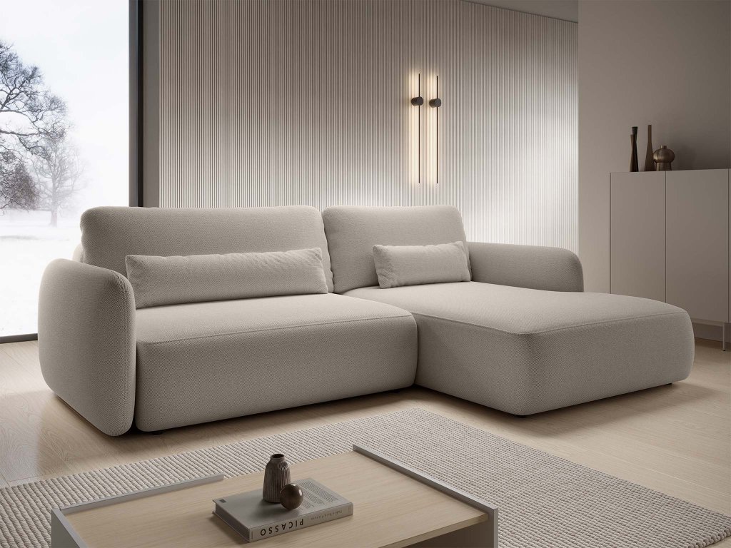 Az egyik legnagyobb előnye, hogy a kanapé egyszerűen átalakítható tágas alvóhelyre. Ideális vendégek számára vagy alkalmi pihenéshez napközben. A kihúzható kanapé emellett praktikus tárolóhelyet rejt, ahová könnyedén elhelyezhet különféle párnákat, takarókat, ágyneműhuzatokat vagy szezonális kiegészítőket. A csomag tartalmaz támasztó és dekoratív párnákat is, amelyek kiemelik luxus megjelenését.