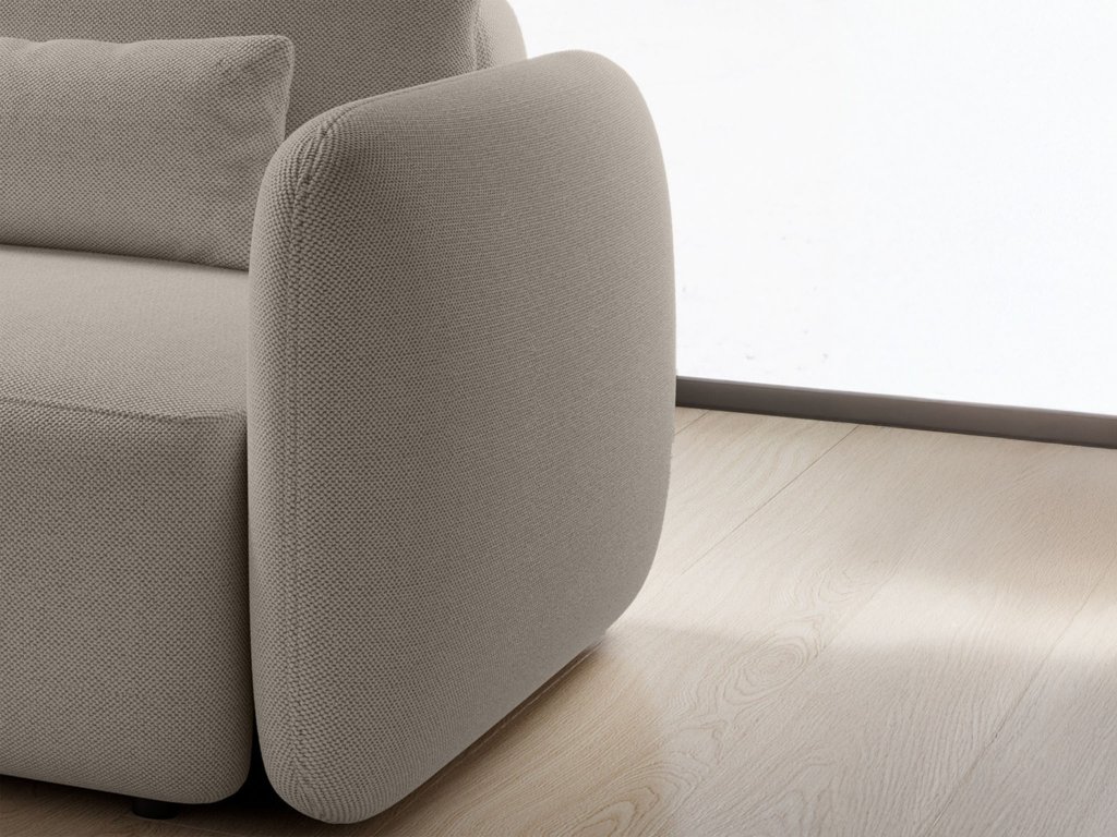 Kiváló minőségű forgácslapból készült szerkezete biztosítja a stabilitást és a hosszú élettartamot. A kanapé ülései T-30 habbal vannak kitöltve és B típusú hullámrugóval megerősítve, ami kényelmet és tartósságot garantál a mindennapi használat során. A felületet Curio szövet kárpitozás alkotja. Praktikus kötött anyag finom felülettel és hidrofób bevonattal, amely lassítja a folyadékok beszívódását. Ennek köszönhetően ez a kiváló minőségű kanapé gyermekes háztartásokba is alkalmas.