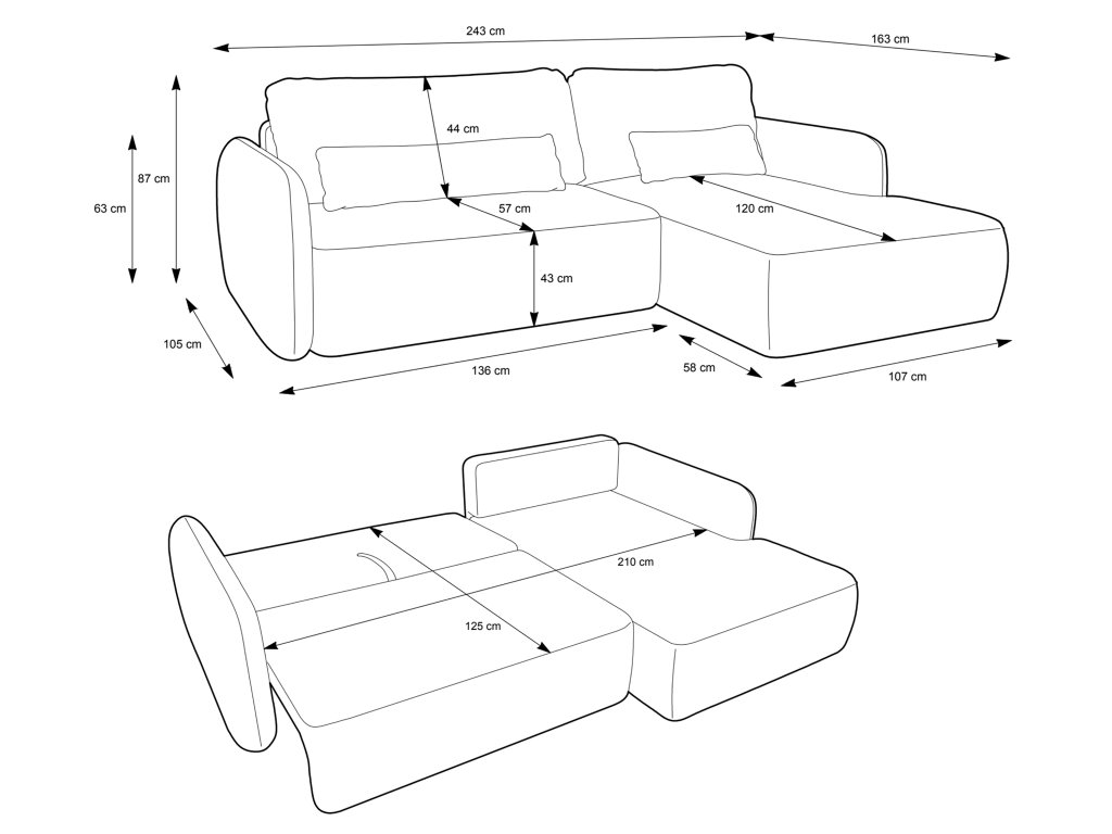 - Az ágy mérete kinyitás után: 210 x 125 cm