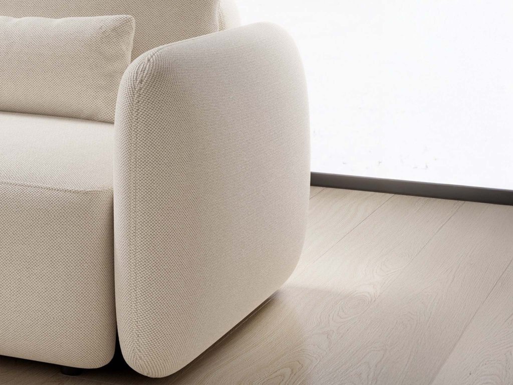 A ülőrész T-30 habbal van kitöltve, és B típusú hullámrugóval van kiegészítve, ami puhaságot és tartósságot garantál. A szilárd forgácslap szerkezet stabilitást és hosszú élettartamot biztosít. A felületet a Curio szövet alkotja. Ez egy modern kötött anyag finom felülettel és speciális hidrofób kezeléssel, amely megakadályozza a folyadékok gyors felszívódását. A kanapé gyermekes háztartásokba is alkalmas.