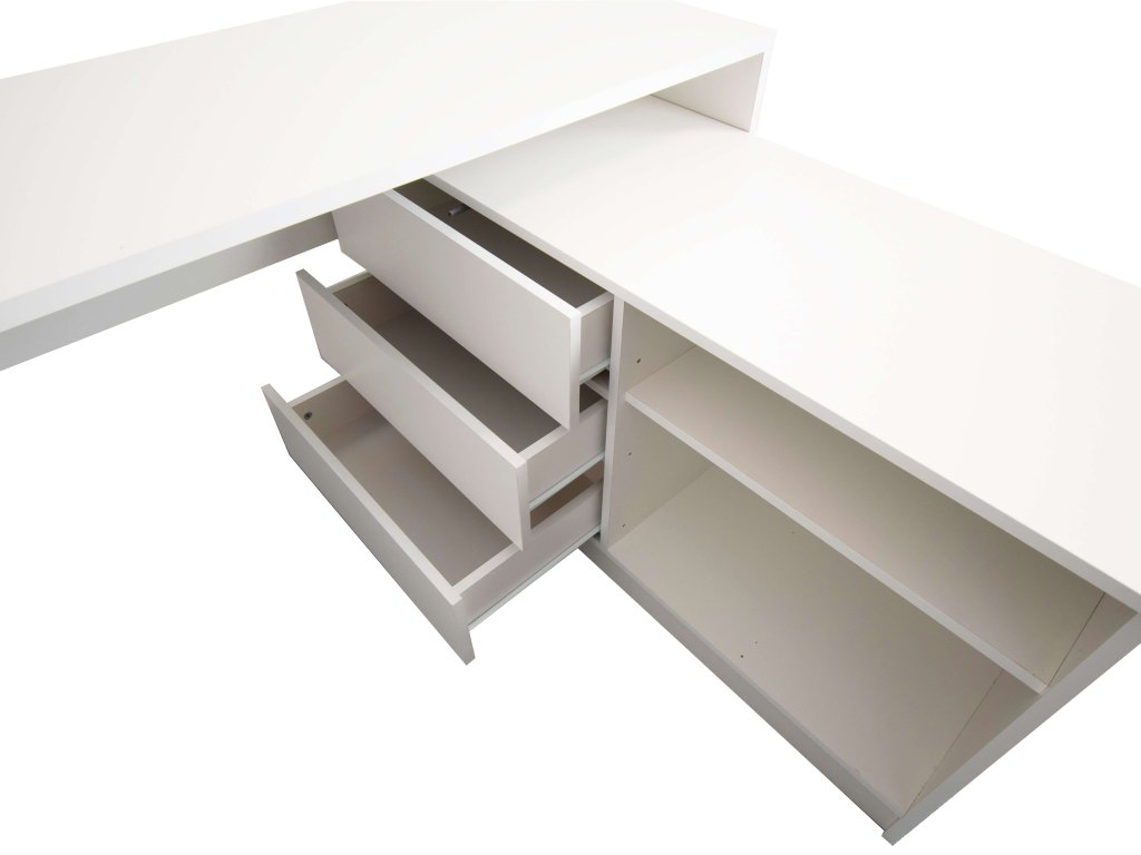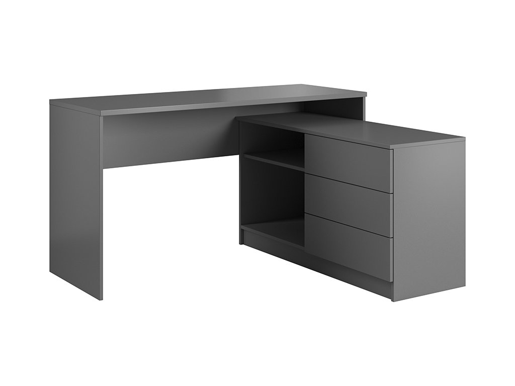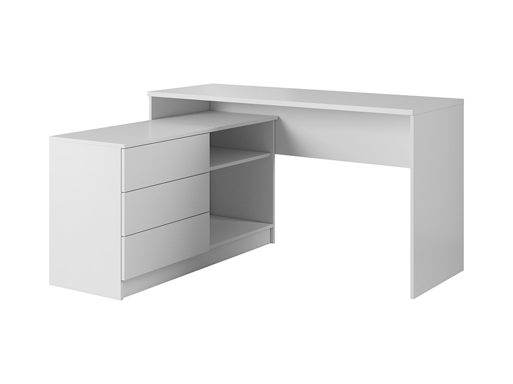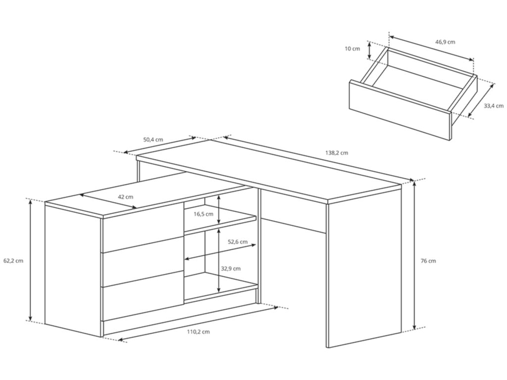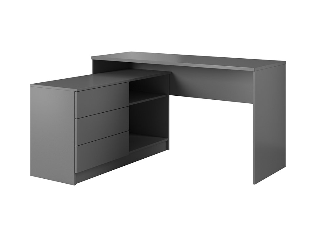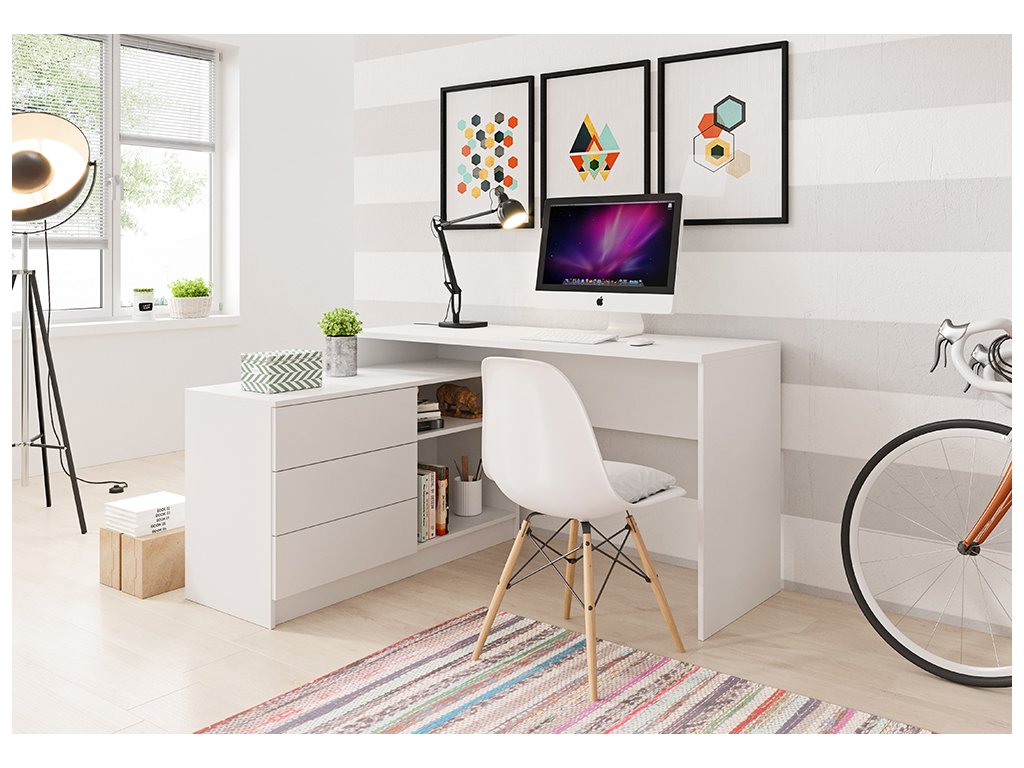 A Teo íróasztal magas minőségi laminált deszkából és minőségi ABS élekkel készül. Az íróasztal praktikus szekrénnyel rendelkezik, elegendő tárolóhelyet biztosít. Három fiókot és két nyitott részt tartalmaz. Az íróasztal időtálló dizájnjának köszönhetően nem csak gyerek- vagy ifjúsági szobába használható, tökéletesen megállja a helyét irodában vagy otthoni dolgozószobában is. Az íróasztal előnye az univerzális elhelyezése. Ez azt jelenti, hogy kiválaszthatja, melyik oldalra szeretné felszerelni a szekrényt, így bal vagy jobb oldalra is elhelyezhető. A fiókok push-to-open funkció segítségével nyithatóak.