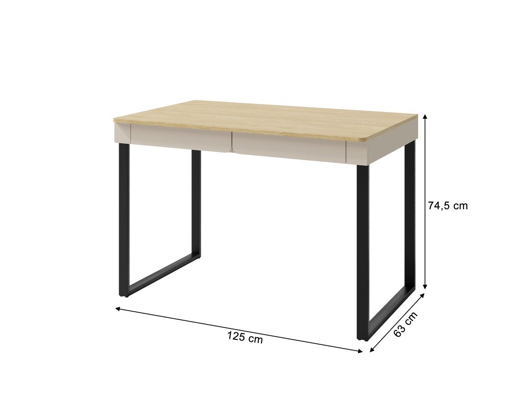 Modern Luca íróasztal két praktikus fiókkal, amely tökéletes választás mindenkinek, aki szereti a sötét és a világos színek kombinációját. Az asztallap olajozott tölgy színű, a két fiók bézs színben készül, míg a lábak fekete színűek. Ez a design tökéletesen illik a gyerekszobába vagy a dolgozószóbába, de megállja a helyét a hálószobában fésülködő asztalként is. A bézs íróasztal két fiókkal igazán minőségi darab, laminált 16 mm forgácslapból készült. Az élei ABS élzárással rendelkeznek. Elég már csak egy kényelmes irodai forgószéket vagy egy szép étkezőszéket választani mellé.