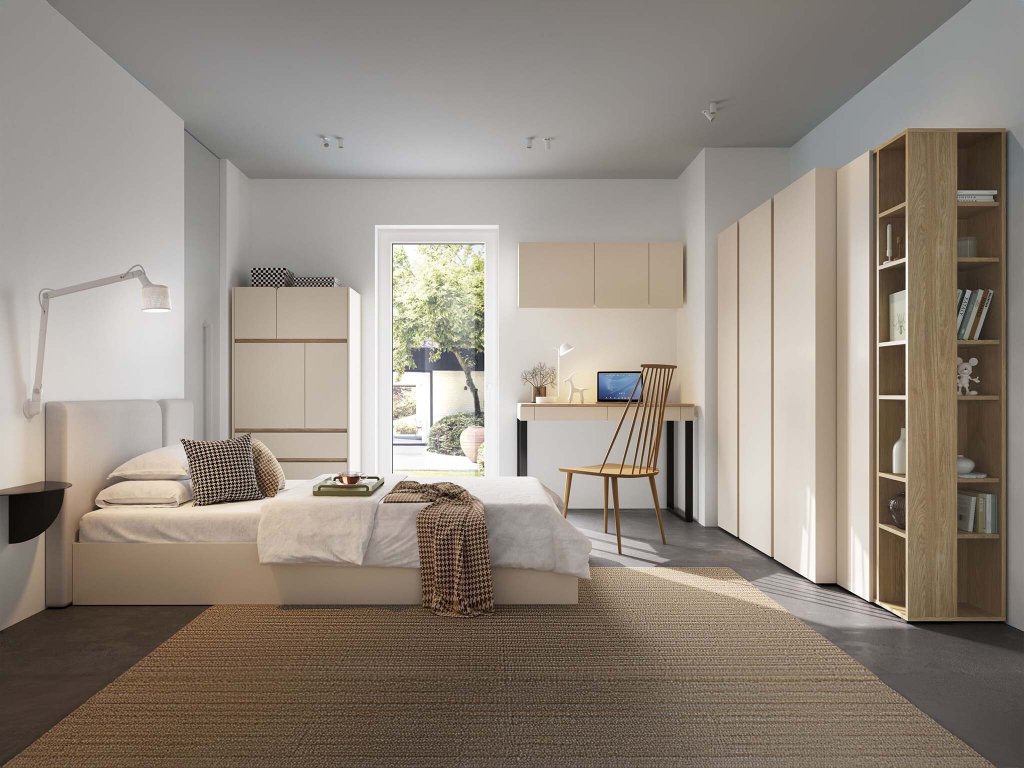 Modern ifjúsági szoba vagy gyerekszoba időtálló bézs színben