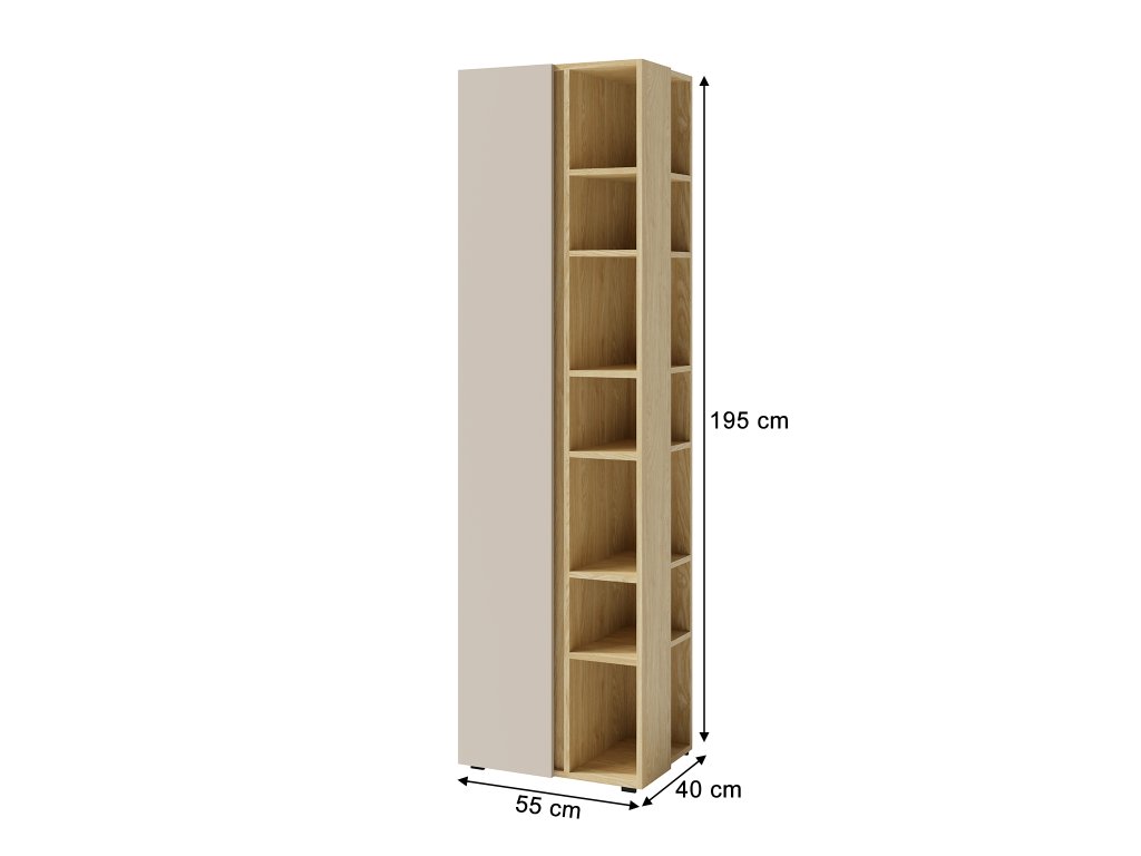 A stílusos LUCA polcos szekrény a gyerekszobába, a hálószobába vagy akár a dolgozószobába vagy az irodába is választható. A szekrény két részre van osztva. Az egyik része egy szekrény négy polccal. A másik részében pedig praktikus könyvespolc található olajozott tölgy színben. Elhelyezheti rá a könyveit, dísztárgyait, családi fényképeit, esetleg a dokumentumokat. A fa színe a homokszínnel nagyon lágy és elegáns hatást kelt. A szekrény minőségi laminált 16 mm vastag forgácslapból készül. Az élei ellenálló ABS furnérral biztosítottak. Az ajtó fogantyú nélküli nyitással rendelkeznek.
