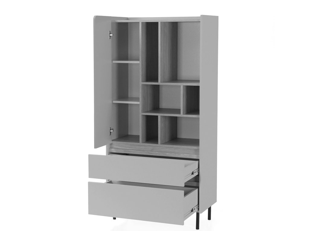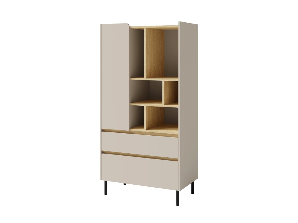 A LUCA magas polcos komód egy elegáns kiegészítő a hálószobába vagy a dolgozószobába. Az olajozott tölgy a bézs színnel kombinálva igazán elegáns és lágy hatást kelt. Ezekkel a semleges színekkel az ember sosem lőhet mellé. A komód az aljában két nagy fiókkal rendelkezik, amelyek fölött egy kis szekrény található és nyitott polcok. A nyitott polcok tökéletes könyvespolcként szolgálhatnak. A magas komód minőségi laminált 16 mm vastag forgácslapból készül. Az élei ellenálló ABS furnérral biztosítottak. Az ajtók és a fiók fogantyú nélküli nyitással rendelkeznek.