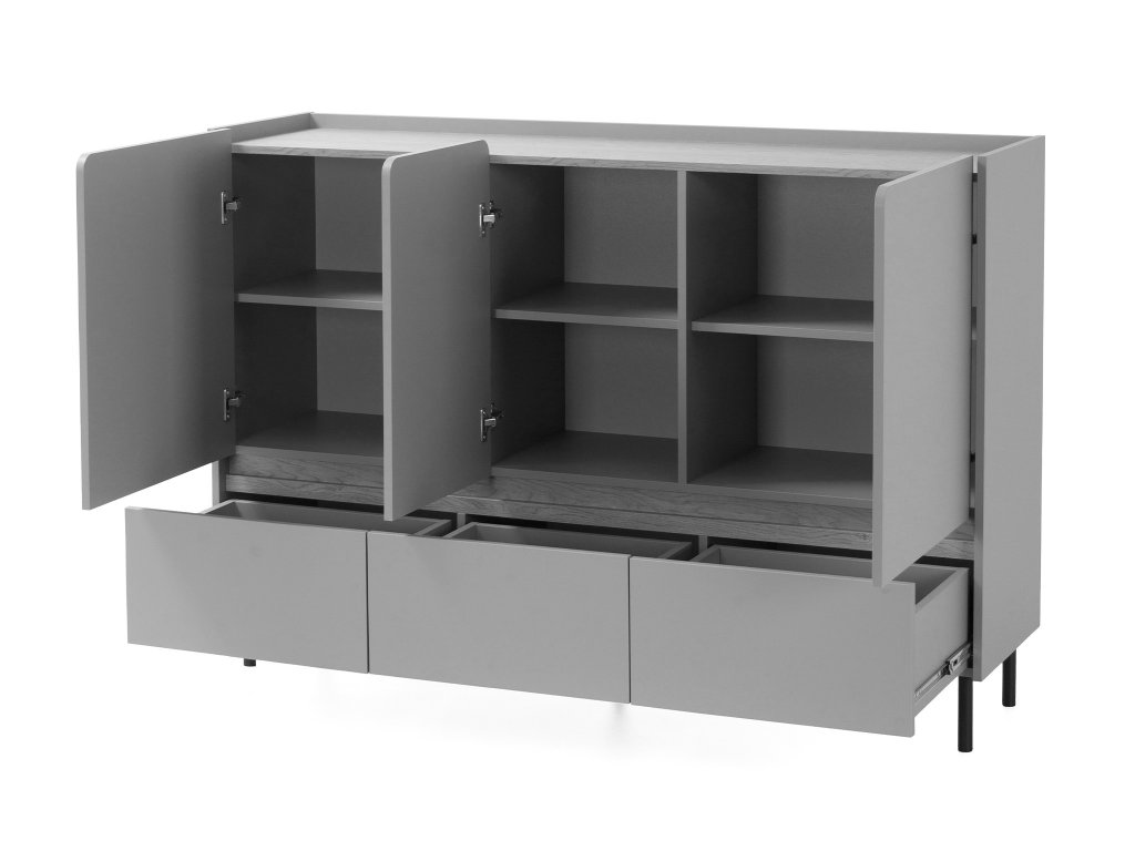 A modern LUCA széles komód három tágas fiókkal és három ajtós szekrénnyel is rendelkezik. Szép bézs színben készül tágas tároló hellyel és igazán gyönyörű designnal. Elfér benne számos ruhanemű, kiegészítő, fehérnemű és egyéb apróságok. A tetejére is elhelyezheti a dísztárgyait vagy növényeit. A háromajtós komód minőségi laminált 16 mm vastag bútorlapból készült. Az élei pedig ABS élzárással biztosítottak.
