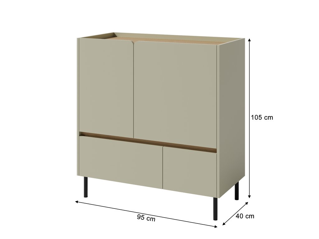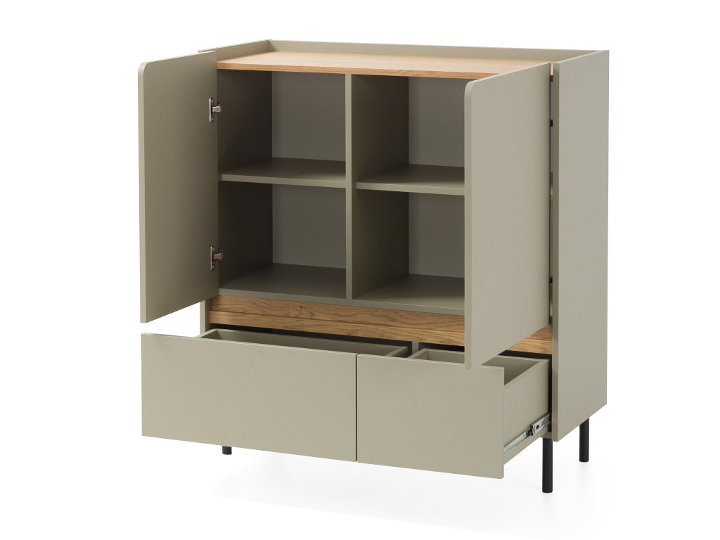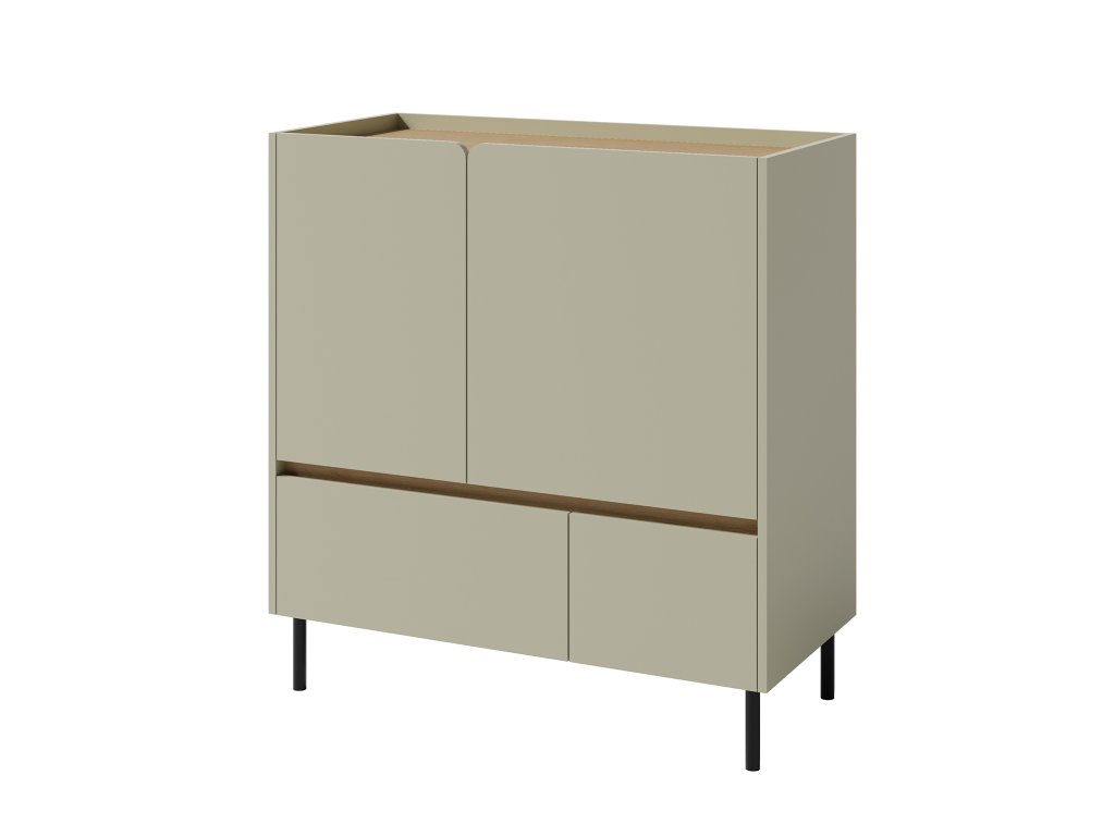 LUCA modern zöld komód magas fekete fém lábakkal. A kétfiókos komód igazán praktikus és elegáns megoldást jelent minden hálószobába vagy gyerekszobába. Minden ajtós szekrény mögött egy-egy polc helyezkedik el. Számos tároló helyet biztosít a ruhaneműknek, kiegészítőknek, fehérneműknek és egyéb apróságoknak. A tetejére is elhelyezheti a dísztárgyait vagy növényeit. A kétajtós komód minőségi laminált 16 mm vastag bútorlapból készült. Az élei pedig ABS élzárással biztosítottak.
