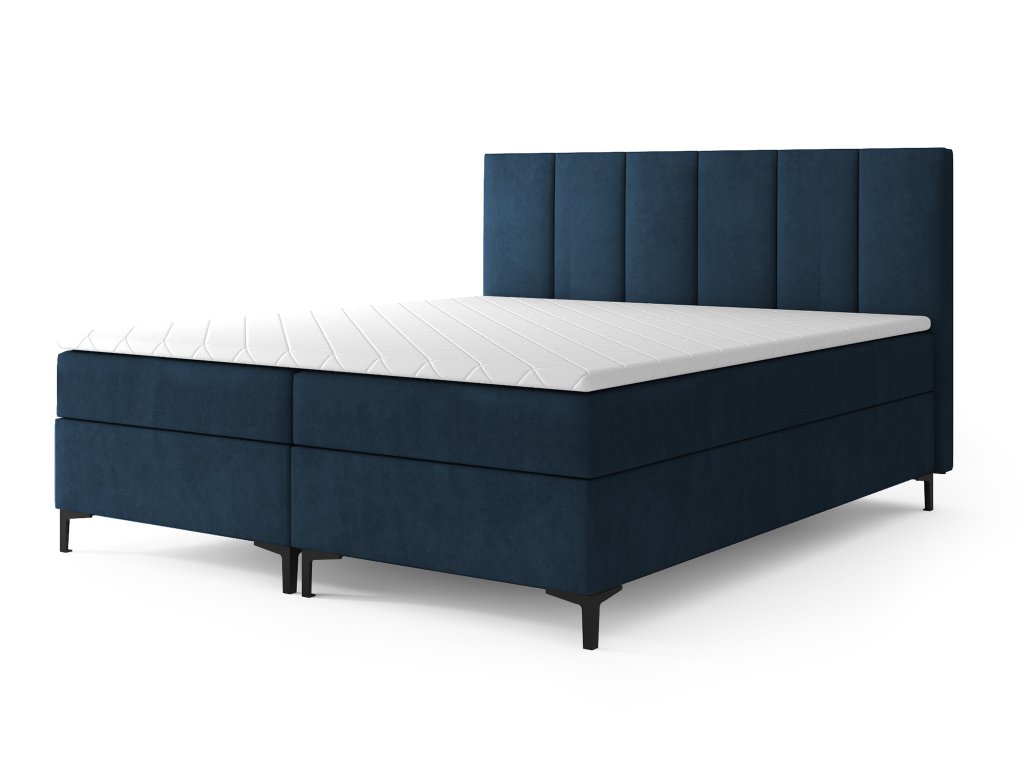 LUIS kárpitozott boxspring ágy - sötétkék