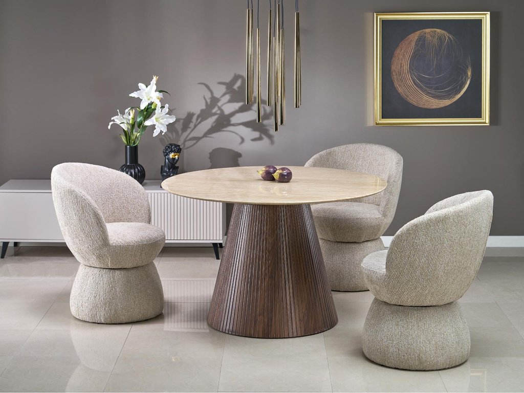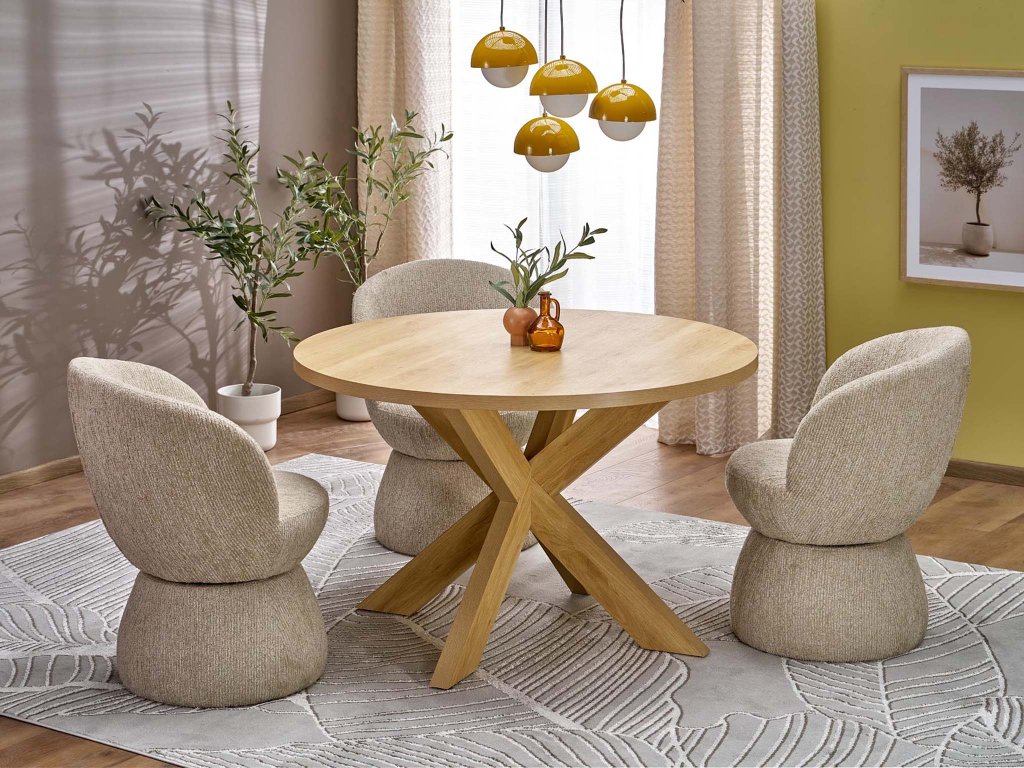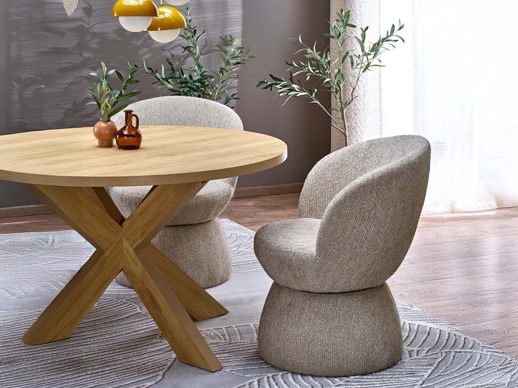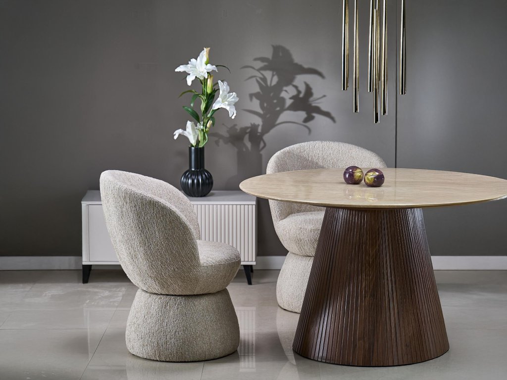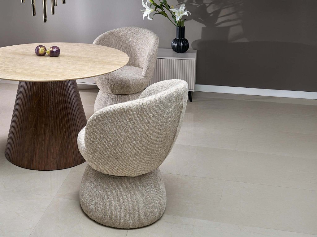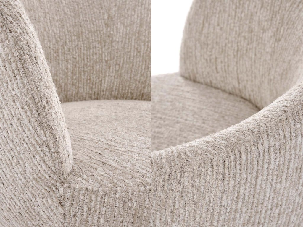 A fotel bézs színű kordbársony borítással van kárpitozva, amely természetes hatású és egyszerűen illeszkedik különféle belső terekhez – a minimalista stílustól a boho vagy skandináv hangulatig. A 360 fokban forgatható ülésnek köszönhetően a Lunó ideális választás nappaliba, dolgozószobába, olvasósarokba, és ugyanúgy praktikus, mint egy eredeti étkezőszék – különösen, ha szeretné étkezőjét egy szokatlan, ugyanakkor rendkívül kényelmes megoldással feldobni.
