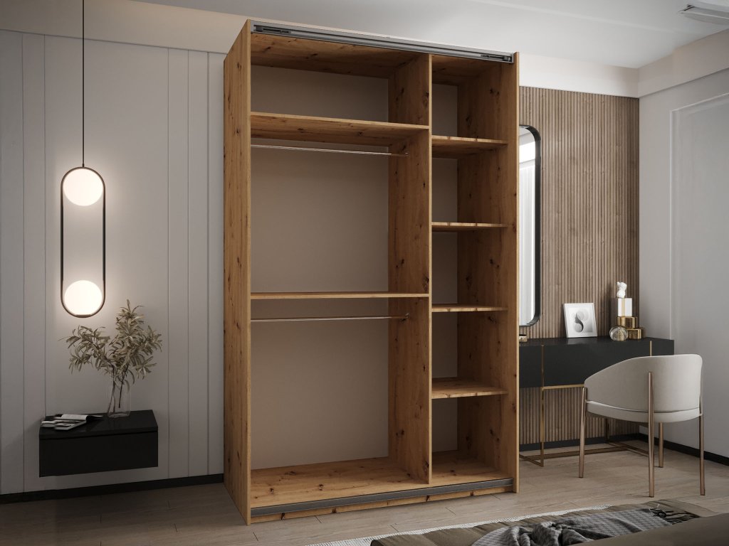 Praktikus bútor lehet egyben igazán elegáns is. Meleg tölgy artisan dekorja fényes ezüst fogantyúkkal kombinálva modern és kellemes megjelenést kölcsönöz minden belső térnek. Ideális bútordarab, akár a hálószobában, előszobában vagy vendégszobában kell hatékonyan megoldani a tárolóhelyet.