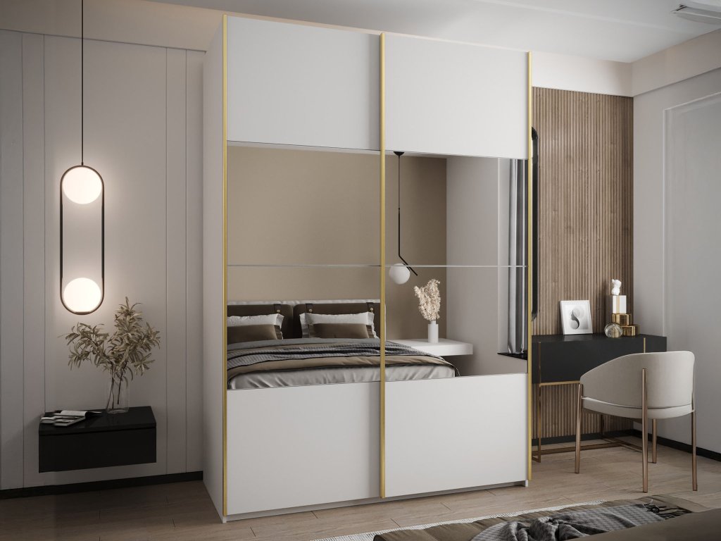 LUXEON 4 ruhásszekrény tükörrel 180x246x61 - fehér/arany