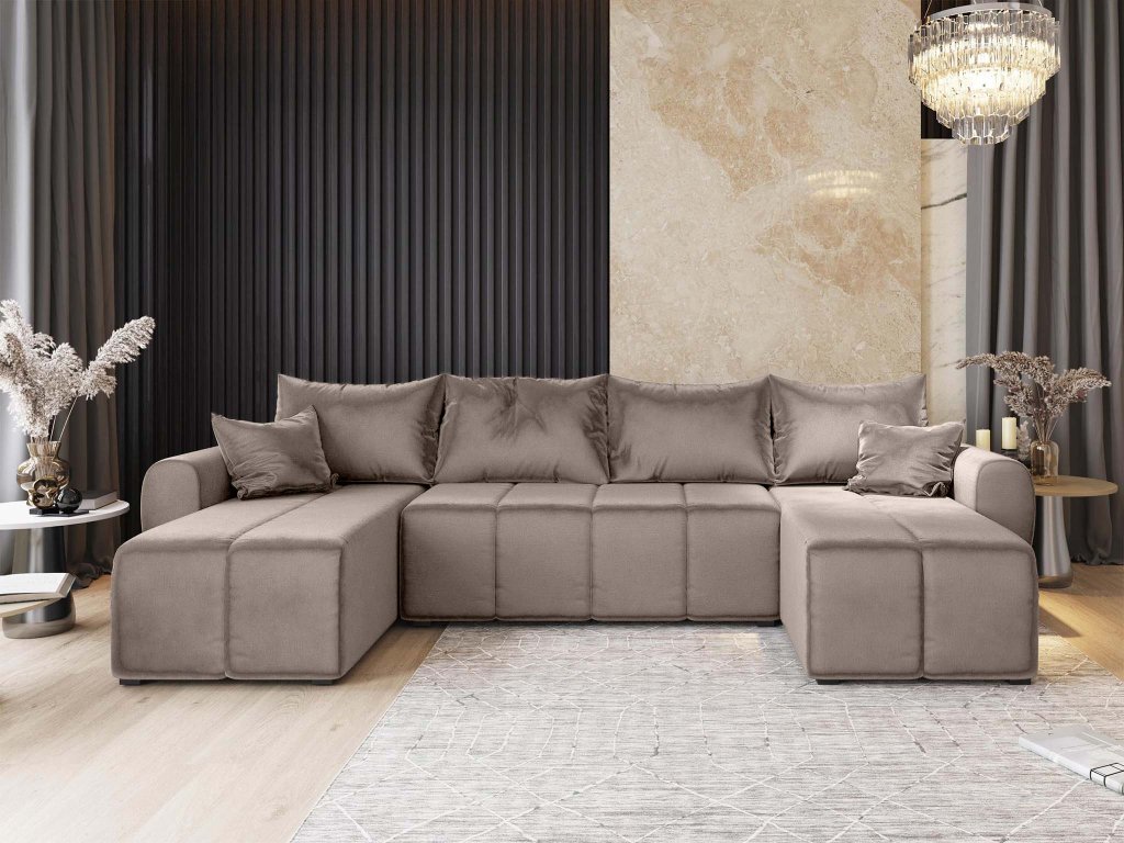 Garantálja a minőségi pihenését a MADESON U alakú sarok ülőgarnitúra segítségével, amely gyönyörű bézs szövettel kárpitozott. Ez a modern U formájú kanapé helyet biztosít az egész családnak. Puha kartámlái és ülőfelülete T25-ös magas rugalmasságú habból készült, amely kivételes kényelmet garantál. A kihúzható funkciójának köszönhetően egy praktikus 140x200 cm vendégággyá alakítható.