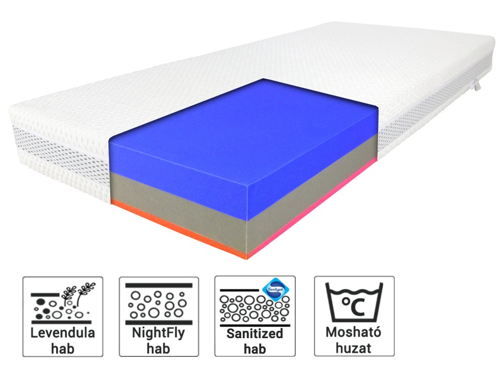 Anyagösszetétel: levendula hab, NightFly hab, Sanitized hab, huzat