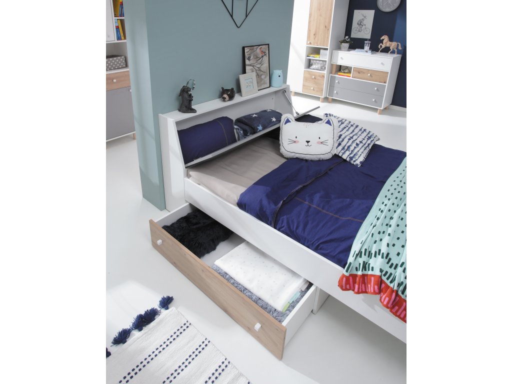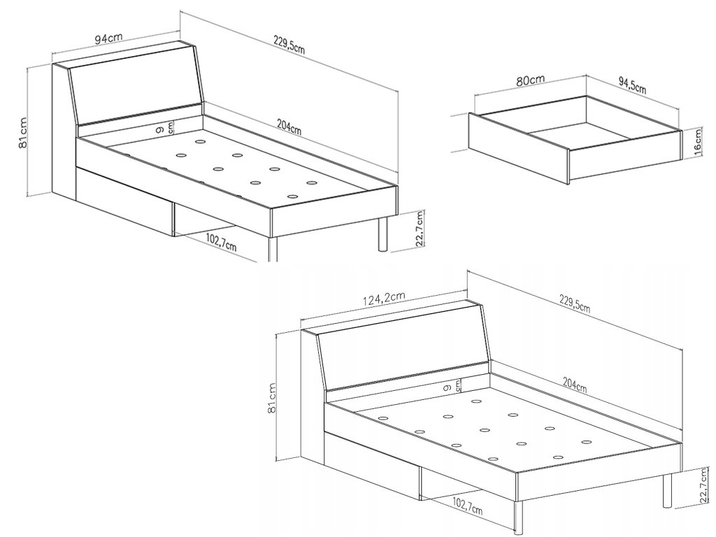 MAMBA egyszemélyes ágy, amely két méretben kapható: 200x90 és 200x120 cm. A dizájnos gyerekágy az ágyneműtartón kívül rendelkezik még az ágytámlában elhelyezett tárolóval is. A gyerekágy univerzális, jobbosan és balosan is össze lehet szerelni.