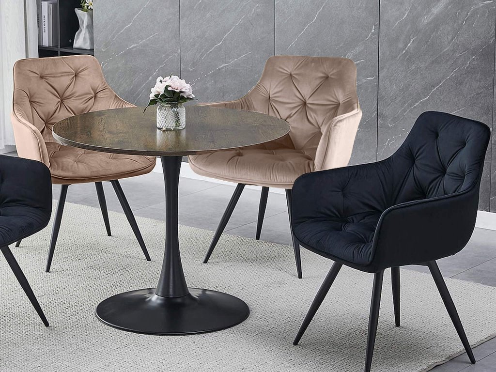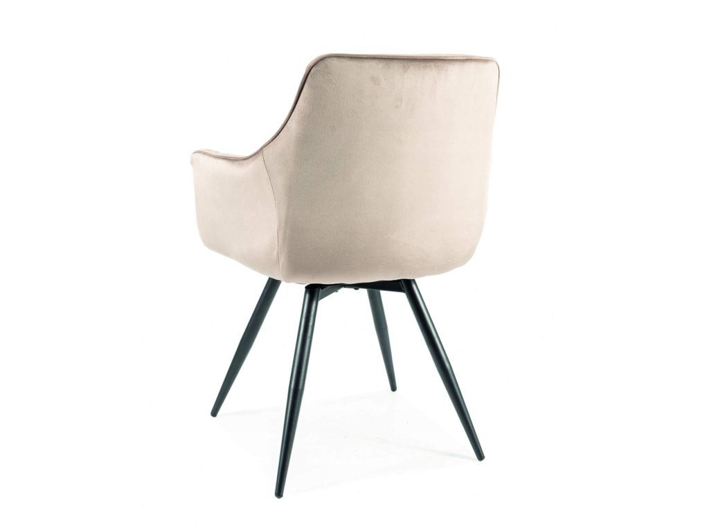 Dobja fel az otthonát ezzel az elegáns és praktikus MANGO forgó étkezőszékkel. Nem mindennapi kinézettel rendelkező forgószék, amely tökéletes választást jelent minden étkezőbe vagy mondjuk a fésülködő asztal mellé is. 180 fokban forog, melynek köszönhetően kényelmes ülést és mozgást biztosít. Közepesen magas formázott háttámlával és kartámlával rendelkezik, amely a hátgerinc megfelelő alátámasztását biztosítja. A fekete fém lábak és a bézs szín kombinációja igazán modern, időtálló és divatos megjelenést kölcsönöz a széknek. Bluvel 40 szövettel kárpitozott, amely egy minőségi és kellemes tapintású szövet. A Mango szék egy klasszikus kiegészítő minden étkezőasztal mellé. Egy praktikus bútordarab, amely biztosítja majd a kényelmes pihenését.