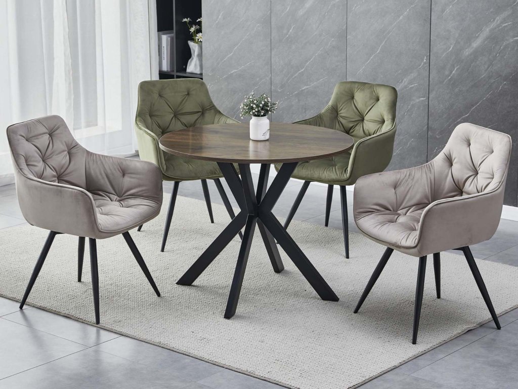 Az étkezőnek nem csak szépnek, de praktikusnak is kell lennie. Tökéletes választást jelenthet ide a MANGO forgó étkezőszék. Ez egy nem mindennapi kinézettel rendelkező forgószék, amely tökéletes választást jelent minden étkezőbe vagy mondjuk a fésülködő asztal mellé is. 180 fokban forog, melynek köszönhetően kényelmes ülést és mozgást biztosít. Közepesen magas formázott háttámlával és kartámlával rendelkezik, amely a hátgerinc megfelelő alátámasztását biztosítja. A fekete fém lábak és a bézs szín kombinációja igazán modern, időtálló és divatos megjelenést kölcsönöz a széknek. Bluvel 77 szövettel kárpitozott, amely egy minőségi és kellemes tapintású szövet. A Mango szék egy klasszikus kiegészítő minden étkezőasztal mellé. Egy praktikus bútordarab, amely biztosítja majd a kényelmes pihenését.