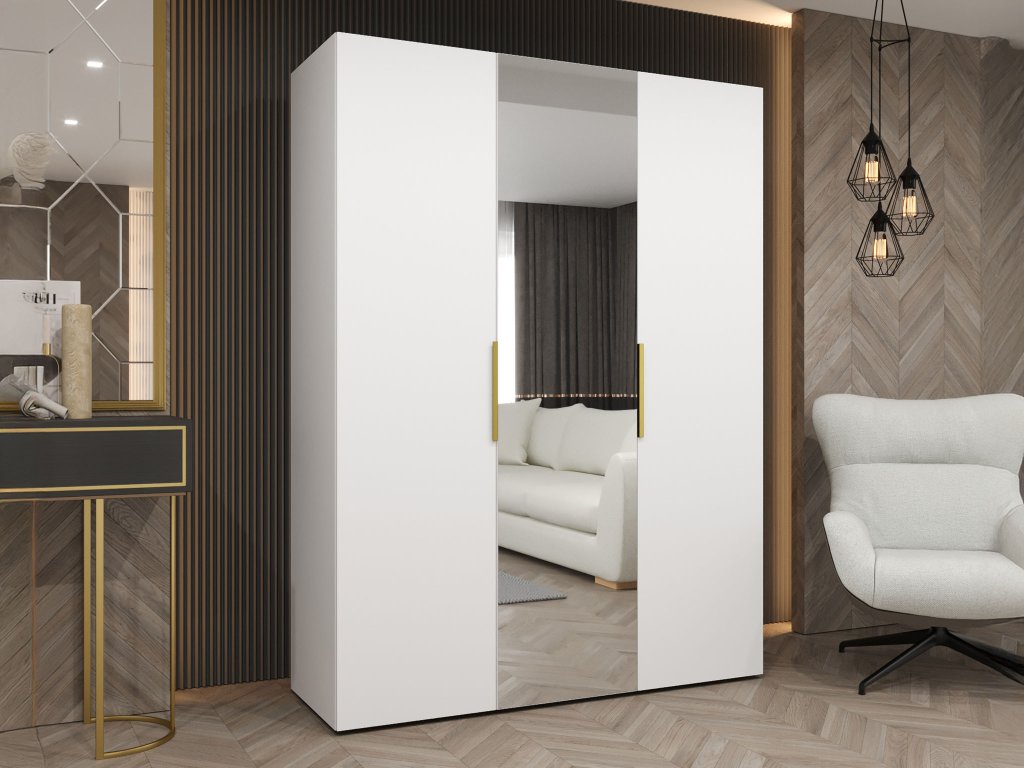 A Marbella 2 háromajtós szekrény 150 cm szélességgel ötvözi a stílusos dizájnt a praktikus tárolási megoldásokkal, és kiválóan illeszkedik a hálószobába, előszobába vagy akár a gyerekszobába is. Háromajtós kialakításának köszönhetően bőséges helyet kínál, valamint egy praktikus tükröt, amelyet a mindennapi használat során különösen értékelni fog. A szekrény aranyszínű alumínium fogantyúi modern és kifinomult megjelenést kölcsönöznek a bútornak. A belső tér logikusan tagolt: fém akasztórudak biztosítanak helyet ruhák, kabátok vagy ingek felakasztásához, felettük pedig egy masszív polc található, amely ideális tárolódobozok, kiegészítők vagy összehajtott ruhák elhelyezésére. A szekrény strapabíró, 16 mm vastag laminált lapból készül, megerősített PVC élekkel a nagyobb védelem érdekében, valamint erős HDF hátlappal, amely a mindennapos használat során is garantálja a stabilitást és a megbízható élettartamot.
