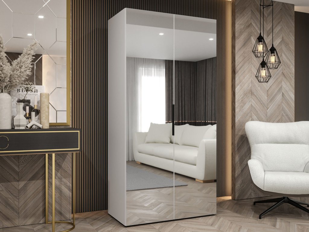 A Marbella 3 fehér színű gardróbszekrény könnyedén alkalmazkodik bármilyen enteriőrhöz, legyen szó hálószobáról, előszobáról vagy vendégszobáról. A szekrény kiváló minőségű laminált lapból készült, tartós PVC élzárással, amely meghosszabbítja az élettartamát. A hátoldalát HDF lap erősíti a jobb stabilitás érdekében. Az elülső részt polírozott tükör díszíti, amely nemcsak szebbé teszi a teret, hanem optikailag nagyobbnak is mutatja a helyiséget. A kifelé nyíló ajtók puha záródással biztosítják a csendes és egyenletes működést. A fekete színű alumínium fogantyúk praktikusak és elegáns részletek. Belül egy fém akasztórúd található a ruhák felakasztásához, valamint egy masszív polc további tárgyak tárolására.