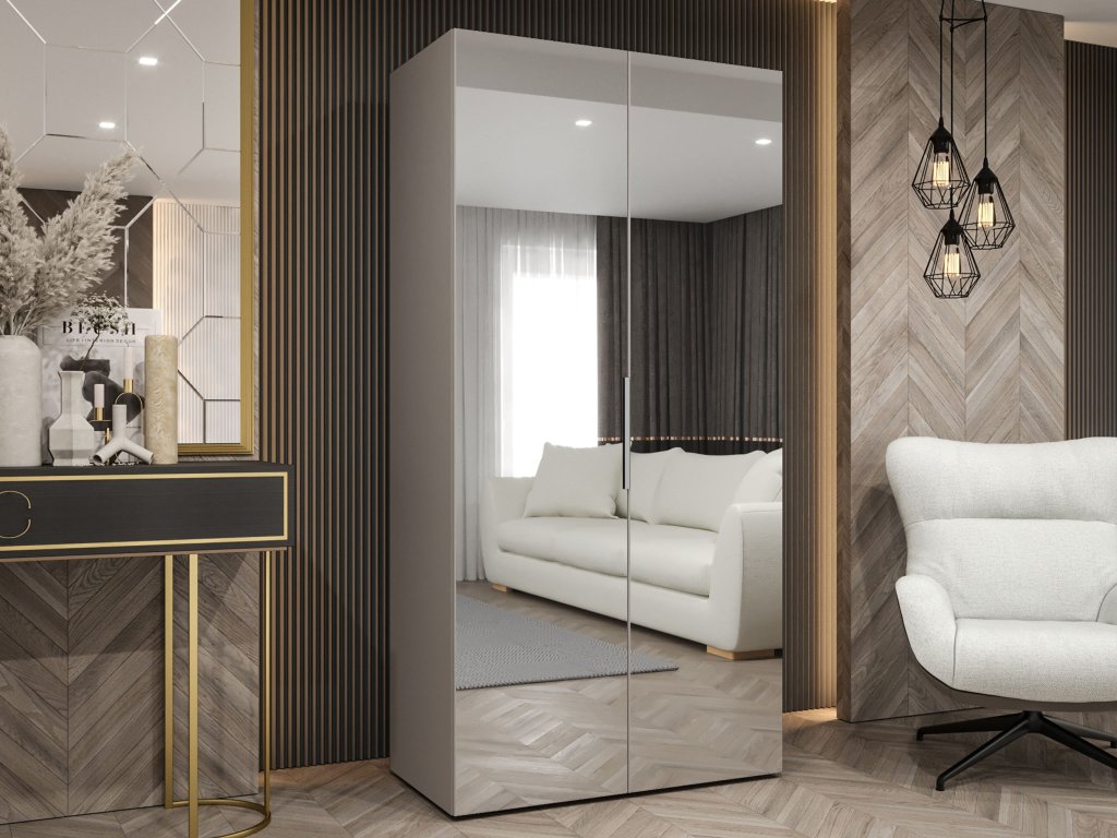 A Marbella 3 egy kiváló minőségű, kasmír színű szekrény, amely bármelyik enteriőrbe remekül illik. Ez a gardróbszekrény strapabíró, laminált lapból készült, minőségi PVC élzárással. Gond nélkül bírja a mindennapos használatot. A szekrény hátlapja erős HDF lapból van. Az elülső részen elegáns, polírozott tükör található, amely optikailag tágítja a teret. Az ajtókon finom kasmír színű alumínium fogantyúk vannak. Az ajtók kifelé nyílnak, és puha záródással rendelkeznek, így csendesen, csapódás nélkül működnek. Belül egy fém akasztórúd és egy praktikus, masszív polc található. Univerzális kialakításának köszönhetően hálószobába, nappaliba, előszobába vagy vendégszobába is tökéletes választás.