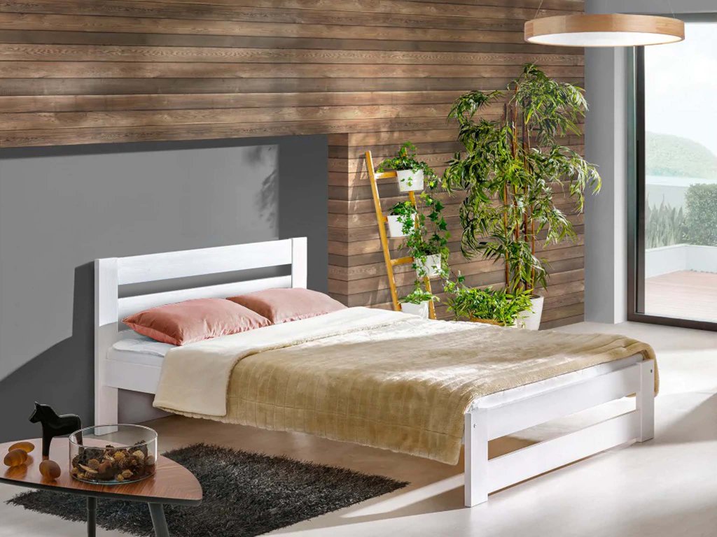 A fehér MARIKA ágy 200 x 120 cm egyszerű és stílusos bútordarab. Tökéletes választás lehet a gyerekszobába, az ifjúsági szobába vagy a vendégszobába. Minőségi tömör borovi fenyőből készül. Az egész ágy stabil szerkezettel rendelkezik, amely biztosítja a kényelmét és a biztonságot alvás során. A fa ágy ágyráccsal együtt kapható.