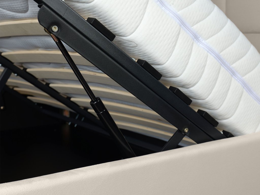 A MARILLA ágy stabil szerkezete hosszú élettartamot garantál. Az ágy része a minőségi fém keretes felnyitható ágyrács 17 sor ívelt fa lamellával, amelyek alvás közben tökéletesen alkalmazkodnak a test mozgásához. A rugalmas lamellákkal ellátott ágyrács megfelelő alátámasztást biztosít a matracnak, és hozzájárul az egészséges, kényelmes pihenéshez. A gázrugós emelőszerkezetnek köszönhetően az ágyrács könnyedén és biztonságosan felnyitható.