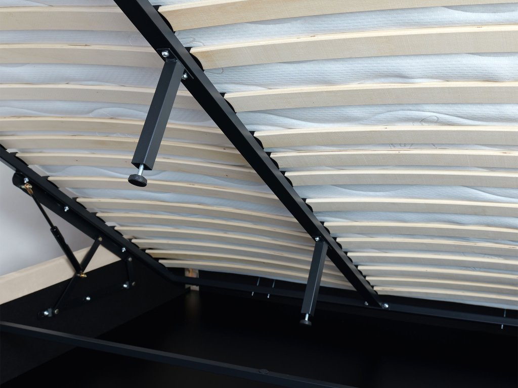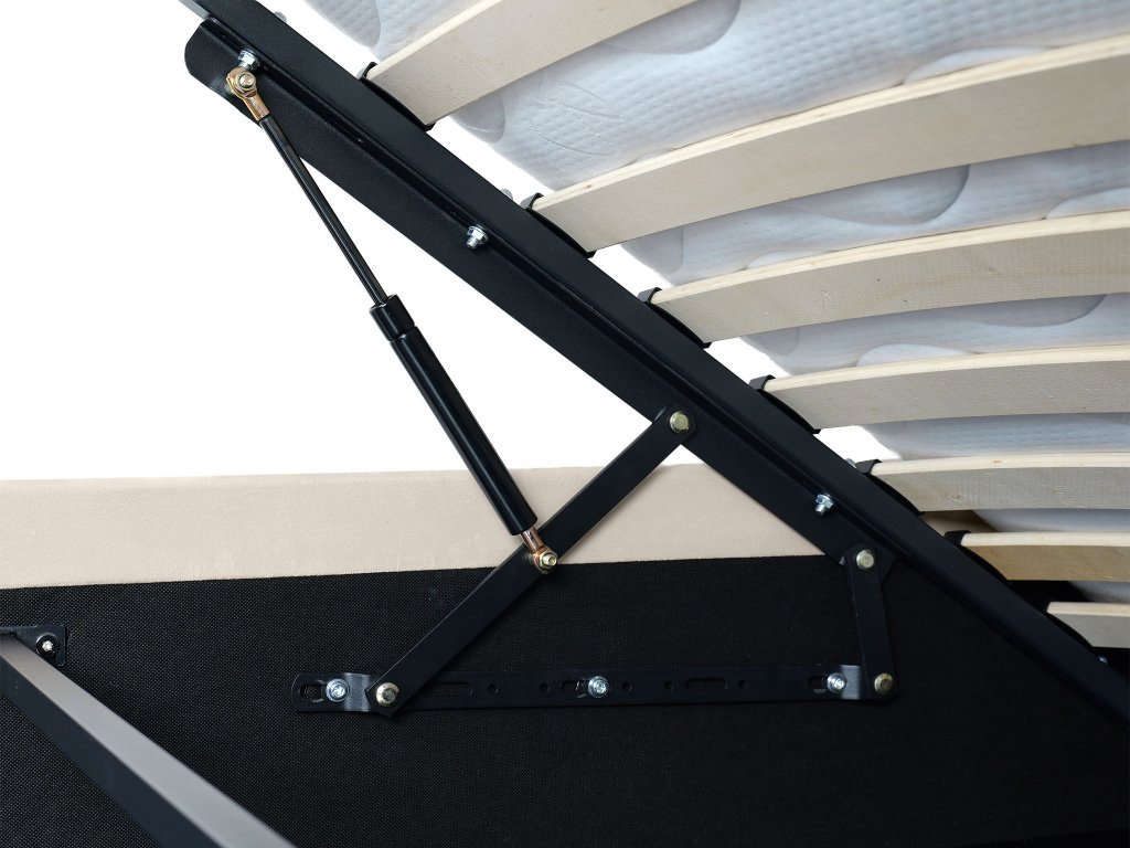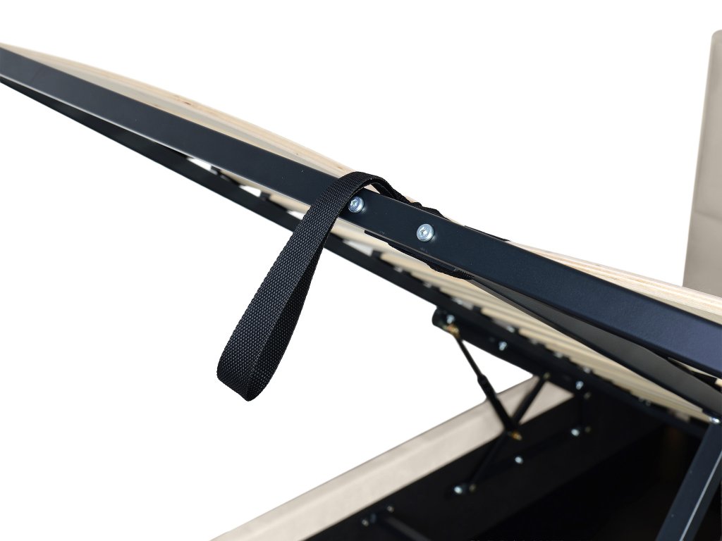 A MARILLA ágy stabil szerkezete hosszú élettartamot garantál. Az ágy része a minőségi fém keretes felnyitható ágyrács 17 sor ívelt fa lamellával, amelyek alvás közben tökéletesen alkalmazkodnak a test mozgásához. A rugalmas lamellákkal ellátott ágyrács megfelelő alátámasztást biztosít a matracnak, és hozzájárul az egészséges, kényelmes pihenéshez. A gázrugós emelőszerkezetnek köszönhetően az ágyrács könnyedén és biztonságosan felnyitható.