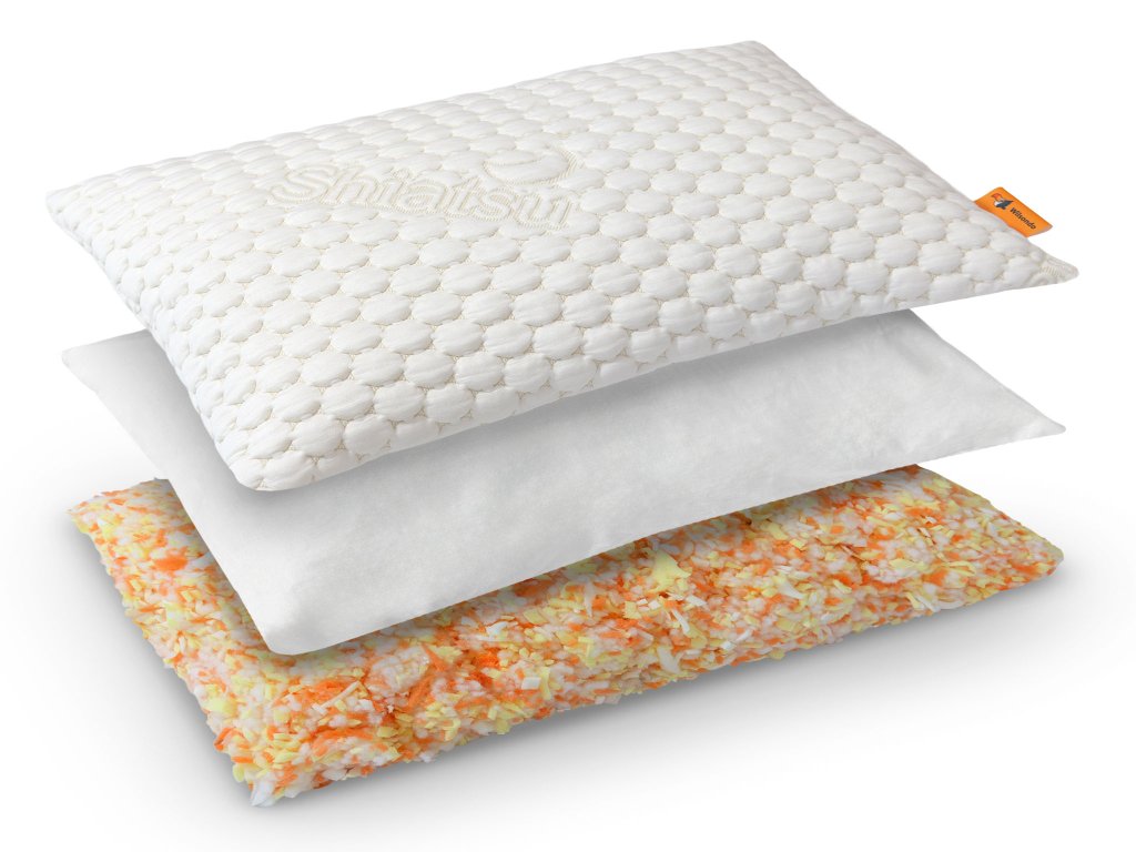 A párna kiváló minőségű és puha Shiatsu huzattal rendelkezik, melynek grammsúlya 500 g/m². Kiemelkedő légáteresztő képességével, antibakteriális tulajdonságaival tűnik ki, továbbá azzal a képességével, hogy egész évben ideális hőmérsékletet tart fenn a párnába belsejében. A cipzáras huzat levehető és mosógépben mosható max. 40 °C-on. Ráadásul OEKO-TEX® tanúsítvánnyal rendelkező anyagokból készült, ami garantálja azt, hogy egészségre is teljesen ártalmatlan. Ezt az anyagot használják a shiatsu terápiás masszázspárnáknál is.