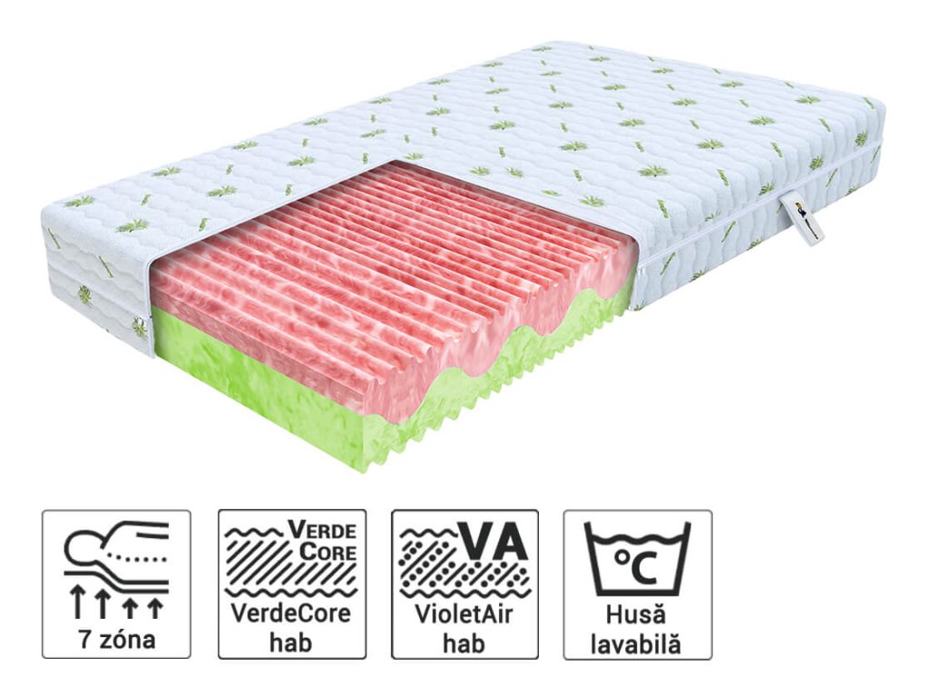 Anyag összetétele: VerdeCore hab, VioletAir profilozott hab
