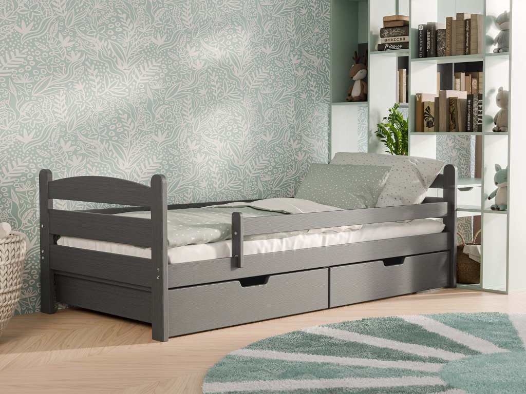 MAURITIUS tömör fa gyerekágy leesésgátlóval 90x200 - szürke