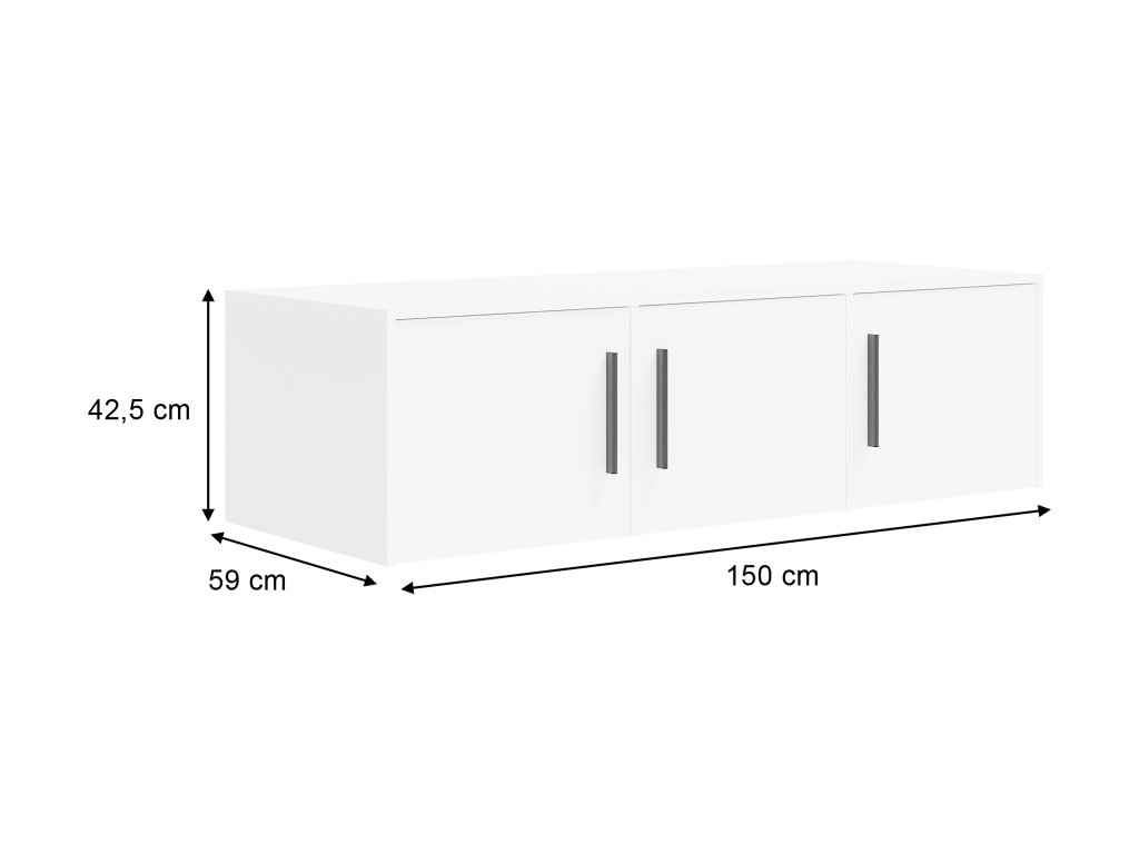Maxione szekrény toldó elegáns fehér színben praktikus kiegészítő a Maxione szekrényhez, amely növeli a tárolóhelyet, miközben megőrzi a belső tér stílusos megjelenését. A háromajtós kialakítás és 150 cm szélesség elegendő helyet biztosít ruhák, ágyneműk vagy szezonális kiegészítők tárolására.