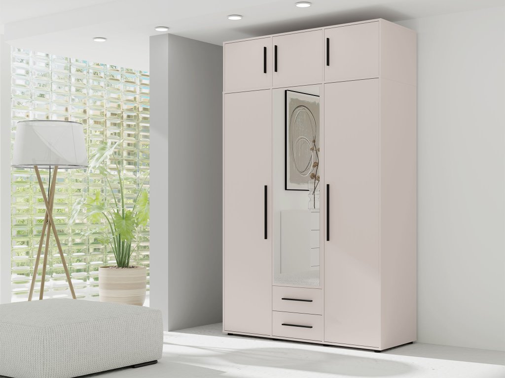 Maxione kasmír kiegészítő egy praktikus megoldás, amely megnöveli a tárolóhelyet a ruhaszekrényében, miközben kiegészíti a modern enteriőr dizájnt. A háromajtós kivitel és a 150 cm szélesség lehetőséget ad ruhák, ágyneműk vagy szezonális kiegészítők tárolására, miközben megőrzi a szoba rendezett és elegáns megjelenését.
