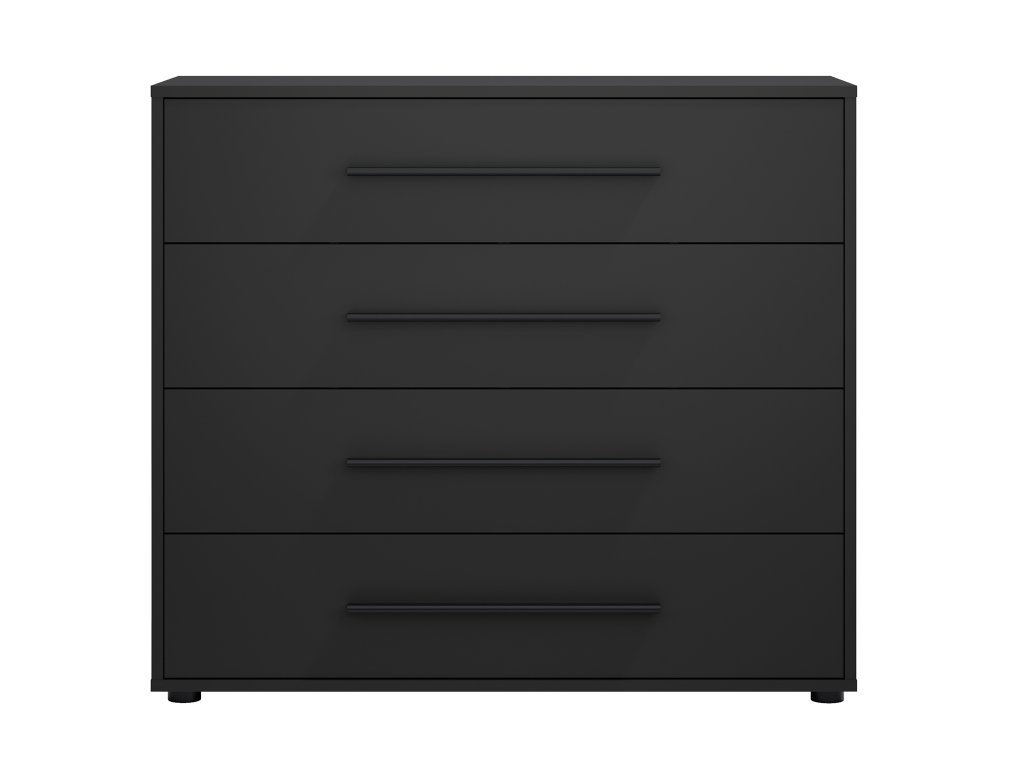 Fekete komód Maxione modern jelleget és praktikus megoldást hoz a mindennapi tároláshoz a belső térbe. Ideális kiegészítő a nappaliba, hálószobába és az előszobába, ahol egyszerű, de kifejező dizájnjával aláhúzza a szoba stílusát. Négy tágas fiók elegendő helyet kínál ruhák, dokumentumok vagy apró kiegészítők számára, így otthona mindig rendezett és áttekinthető marad.