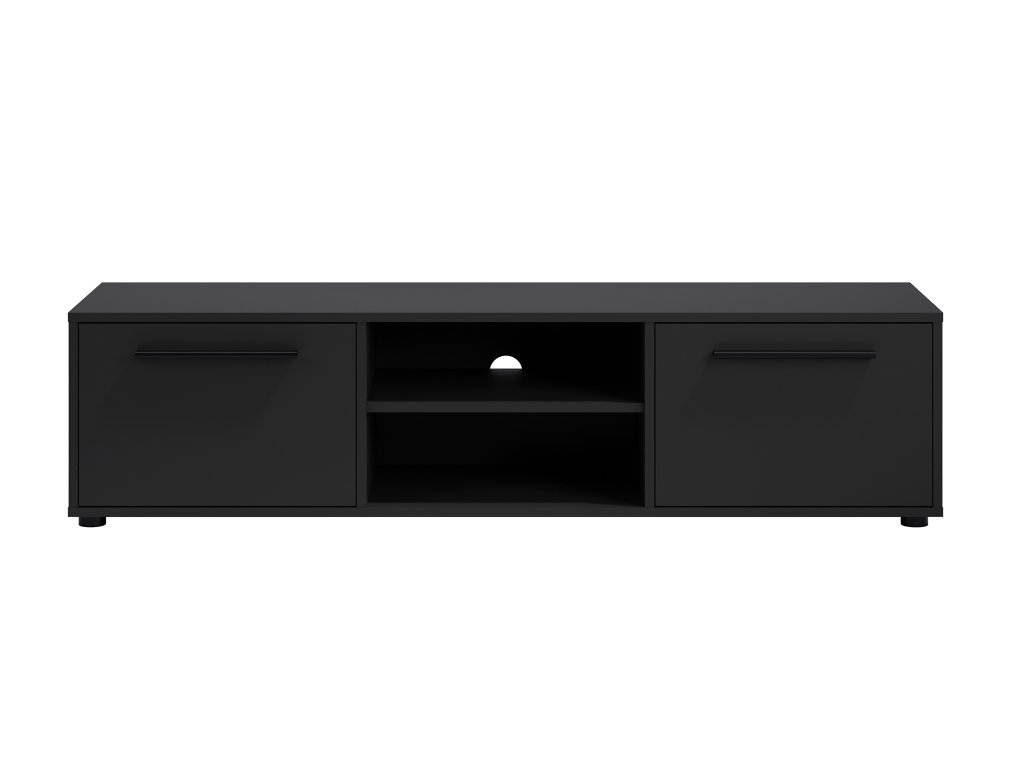 TV állvány Maxione 150 cm hosszúsággal elegáns fekete kivitelben erőteljes és modern megjelenést hoz az enteriőrbe. Nemcsak mint praktikus tv alatti állvány funkcionál, hanem mint dizájnelem, amely kiemeli a nappali vagy hálószoba karakterét. A fekete szín mélységet és modern megjelenést ad a térnek, miközben könnyen kombinálható a többi berendezéssel. Átgondolt tárolási megoldás formájában oldalsó szekrények lenyitható ajtókkal és nyitott polc ideális helyet biztosít az elektronikának, játékkonzoloknak, távirányítóknak és dekorációknak, hogy minden áttekinthetően rendezett maradjon.