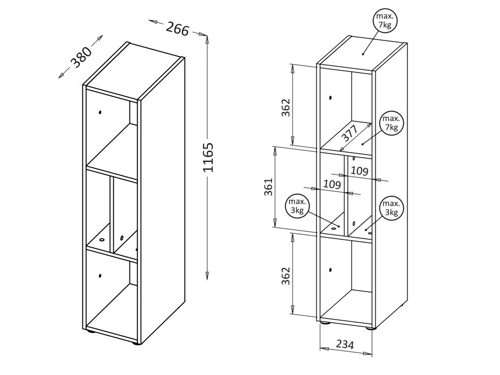 A keskeny MELO polcos szekrény praktikus, designos és modern bútordarab minden otthonba. A stílusos artisan tölgy színének köszönhetően könnyen beillik bárhová. Négy nyitott polccal rendelkezik, melynek köszönhetően tökéletes könyvespolcként is szolgálhat, de elhelyezheti rá a kedvenc dísztárgyait vagy családi fényképeit is. A műanyag lábaknak köszönhető a stabilitása.