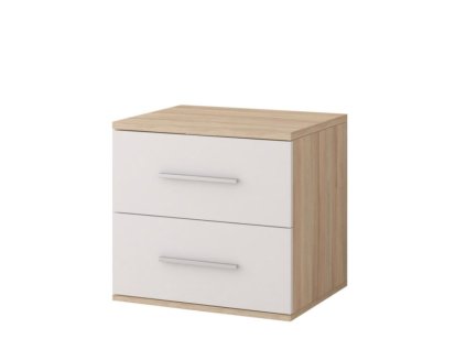 Matt fehér és sonoma tölgy kombinációjában készült KORNIA fiókos éjjeliszekrény