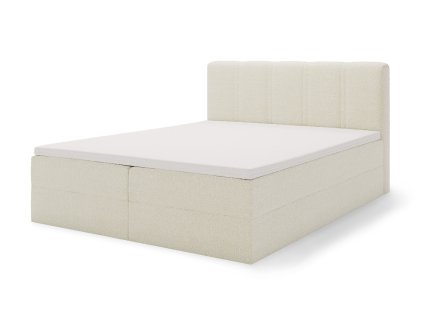 Krémszínű szövettel kárpitozott elegáns franciaágy matracokkal és ágyneműtartóval