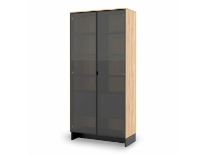 NOMÁD kétajtós vitrin gyönyörű grafitszürke üveg ajtókkal és számos tároló hellyel