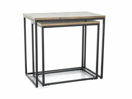 DOBLO két dohányzóasztalból álló szett gyönyörű tölgy színben fekete lábakkal