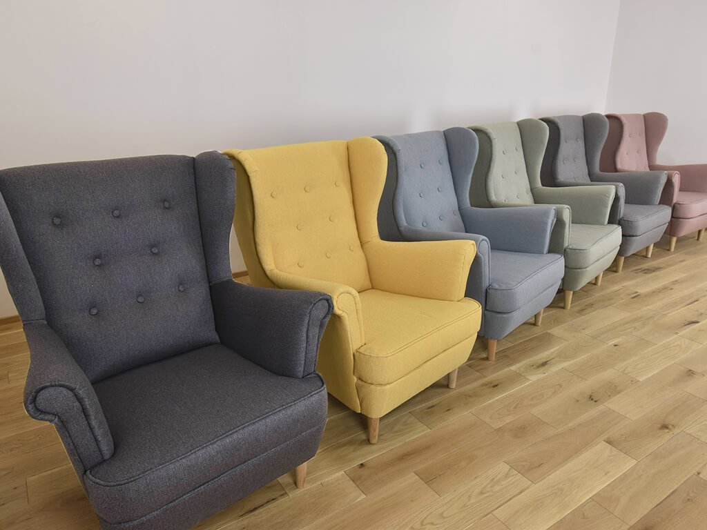 MERIDA füles fotel, amely minden olyan otthonba tökéletes választás, amely retró stílusban van berendezve. Mindazonáltal a modern és a klasszikus otthonokban is megállja a helyét. A kollekció gyönyörű pasztell színekben készült. A magas háttámla steppelt és gombokkal díszített. A formájának köszönhetően kényelmes ülést garantál tévénézés vagy olvasás közben. A fotel minőségi szövettel van kárpitozva, amely remekül ellenáll az elhasználódásnak. A profilozott háttámlára és kartámlára T25, az ülésre T30 keménységű habot használtak fel. A fotel natúr fából készült lábakon áll. A fotel tisztítását nagyban segíti, hogy az ülőfelület kivehető.